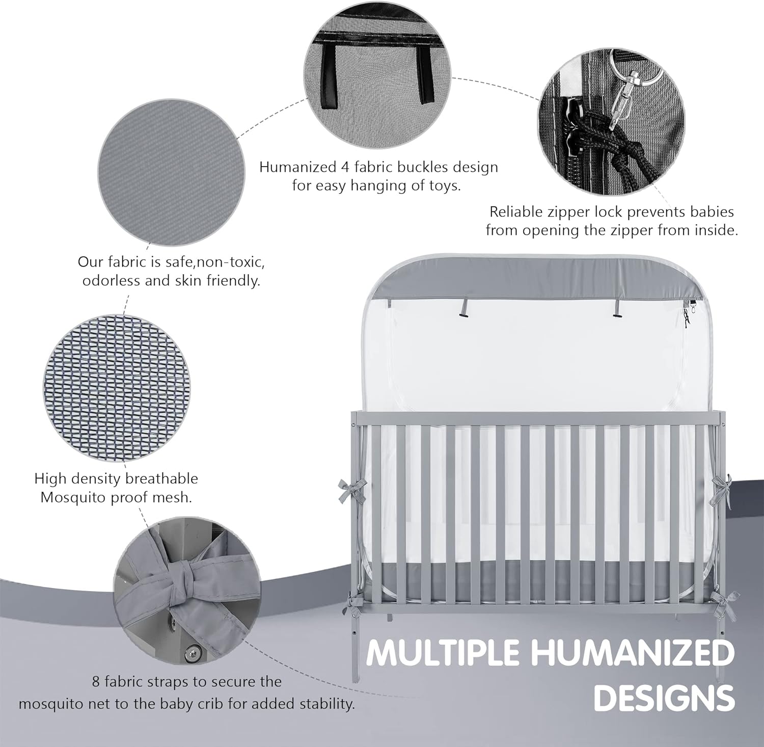 - VERSATILE USE - Our team's initial design goal was to prevent baby from climbing onto the crib, avoiding the danger of falling and limbs getting stuck by the fence. Additionally, our baby crib net can prevent mosquito bites and provide a safe, comfortable, and breathable protective space for your active baby, allowing parents to rest assured.