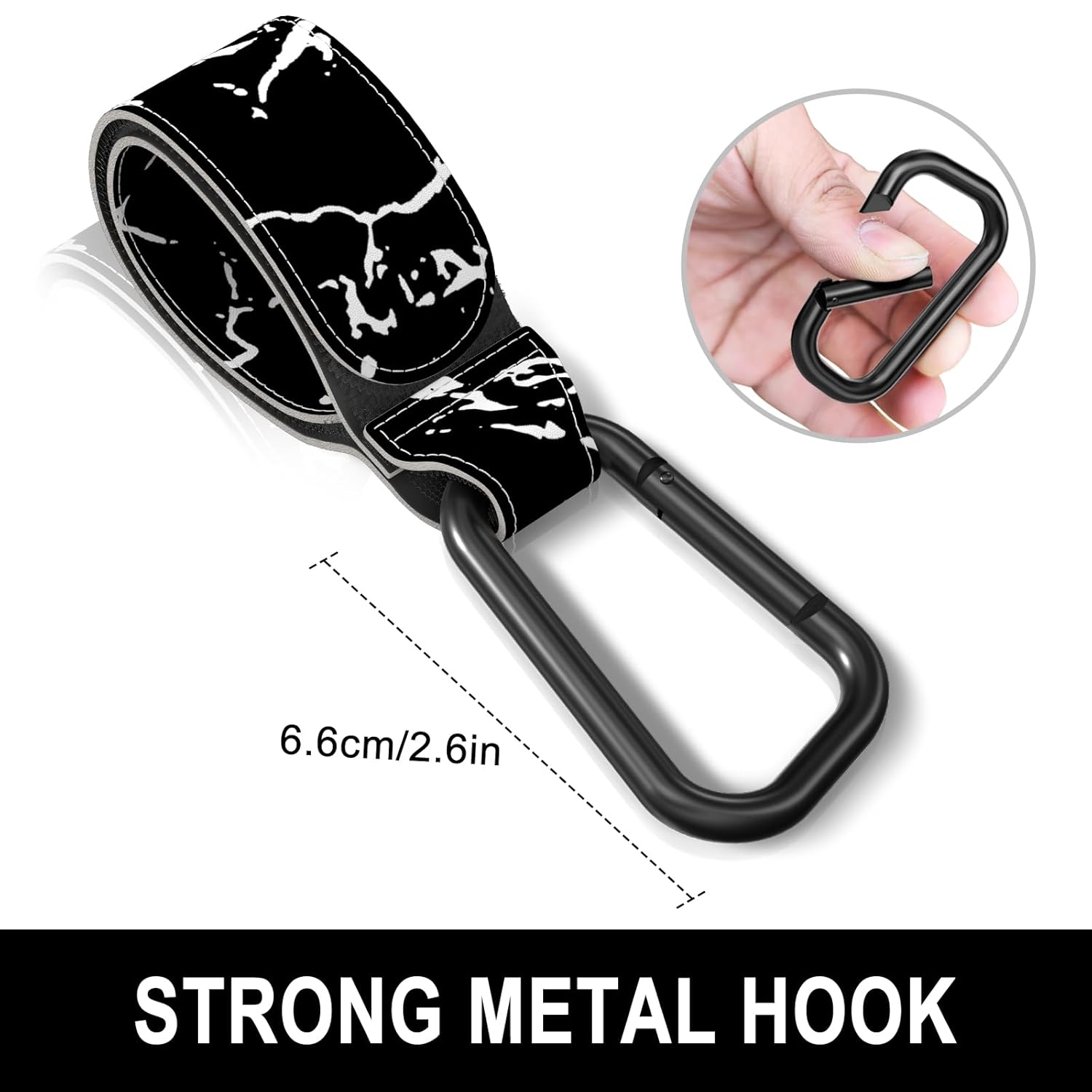 Baby Stroller Hooks for Hanging Bags, Universal Stroller Clips Accessories, Mommy Hook for Diaper Bag, Shopping Cart, Purse, Backpack - 2 Pack, Black Marble