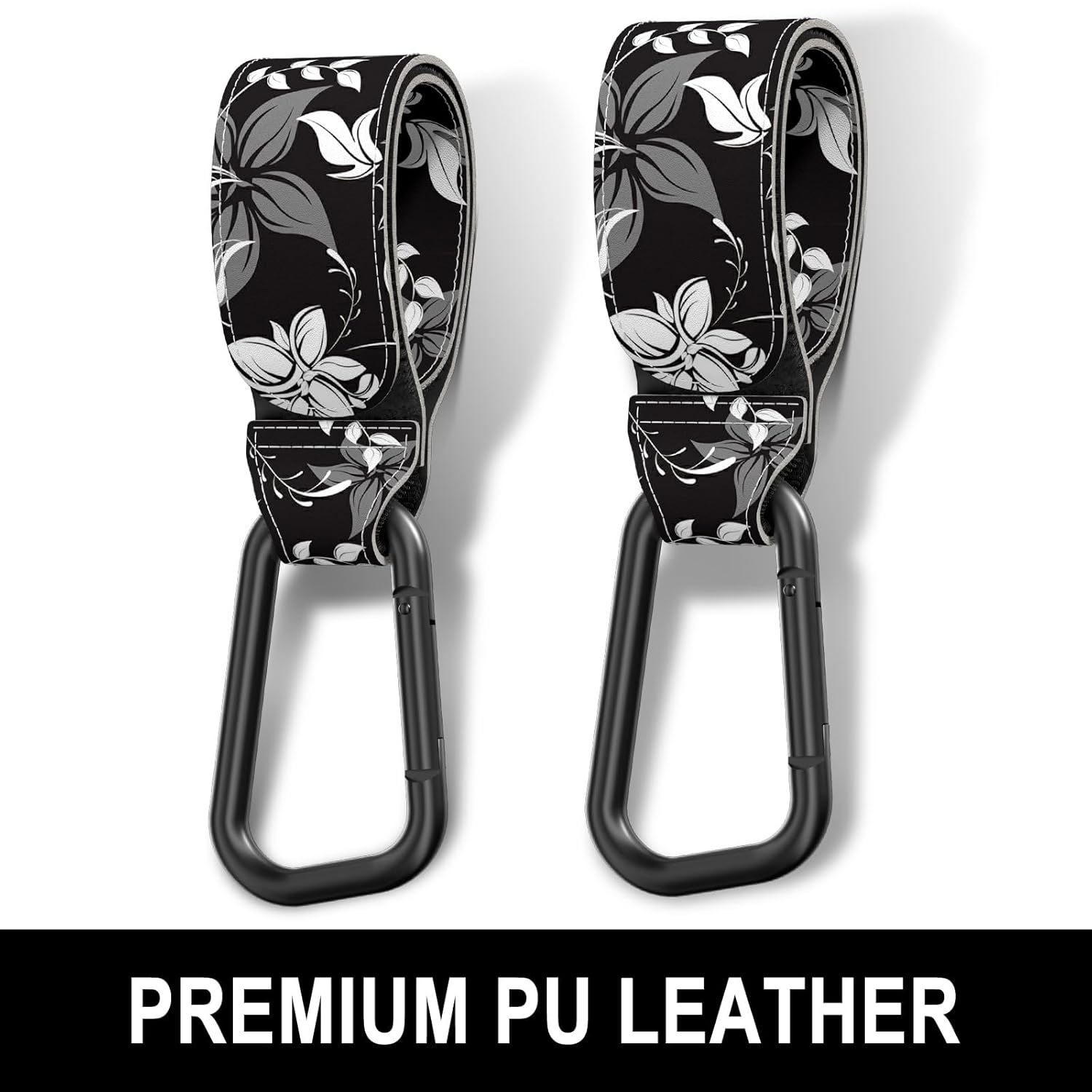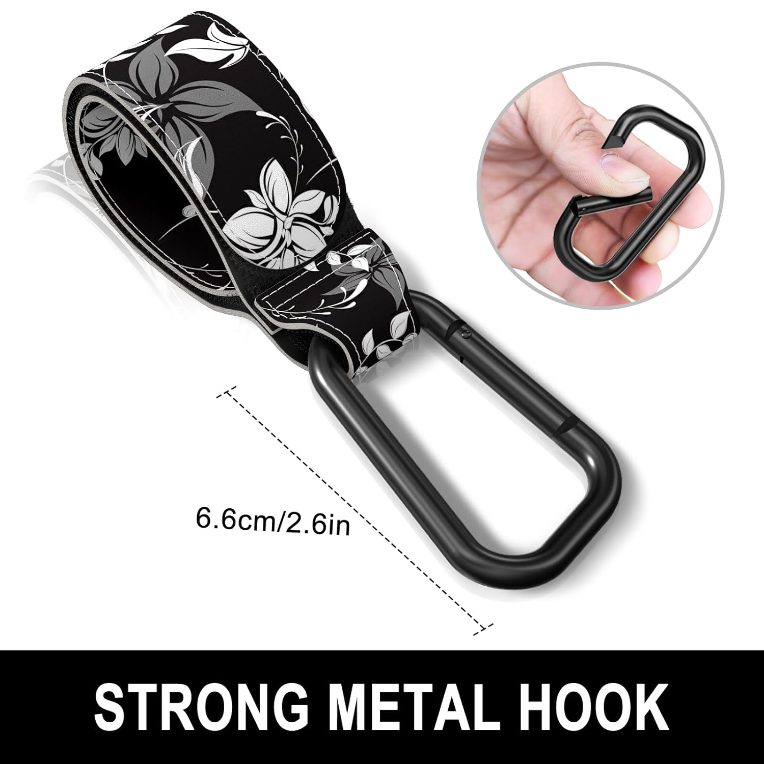Baby Stroller Hooks for Hanging Bags, Universal Stroller Clips Accessories, Mommy Hook for Diaper Bag, Shopping Cart, Purse, Backpack - 2 Pack, Black Flower