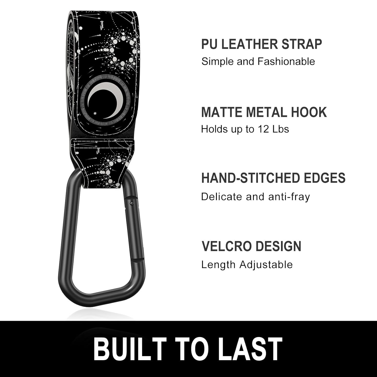 - Strong and Sturdy: Sturdy metal hook and premium leather strap can hold up to 12 lbs, easy to meet all daily needs of hanging bag. Free your hands when you are out, perfect for hanging baby diaper bags, shopping baskets, tote bags, bottles, and toys