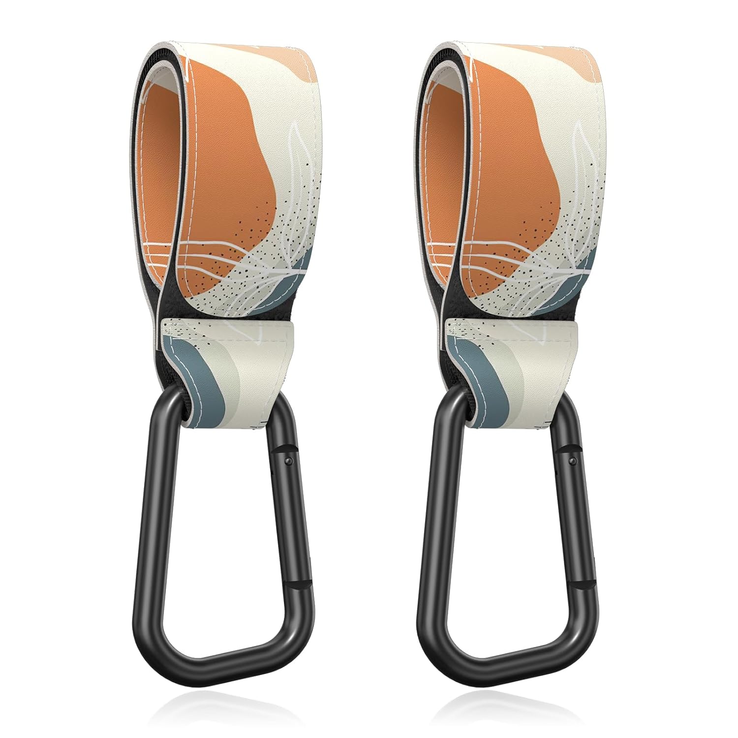 Baby Stroller Hooks for Hanging Bags, Universal Stroller Clips Accessories, Mommy Hook for Diaper Bag, Shopping Cart, Purse, Backpack - 2 Pack, Boho Leaf