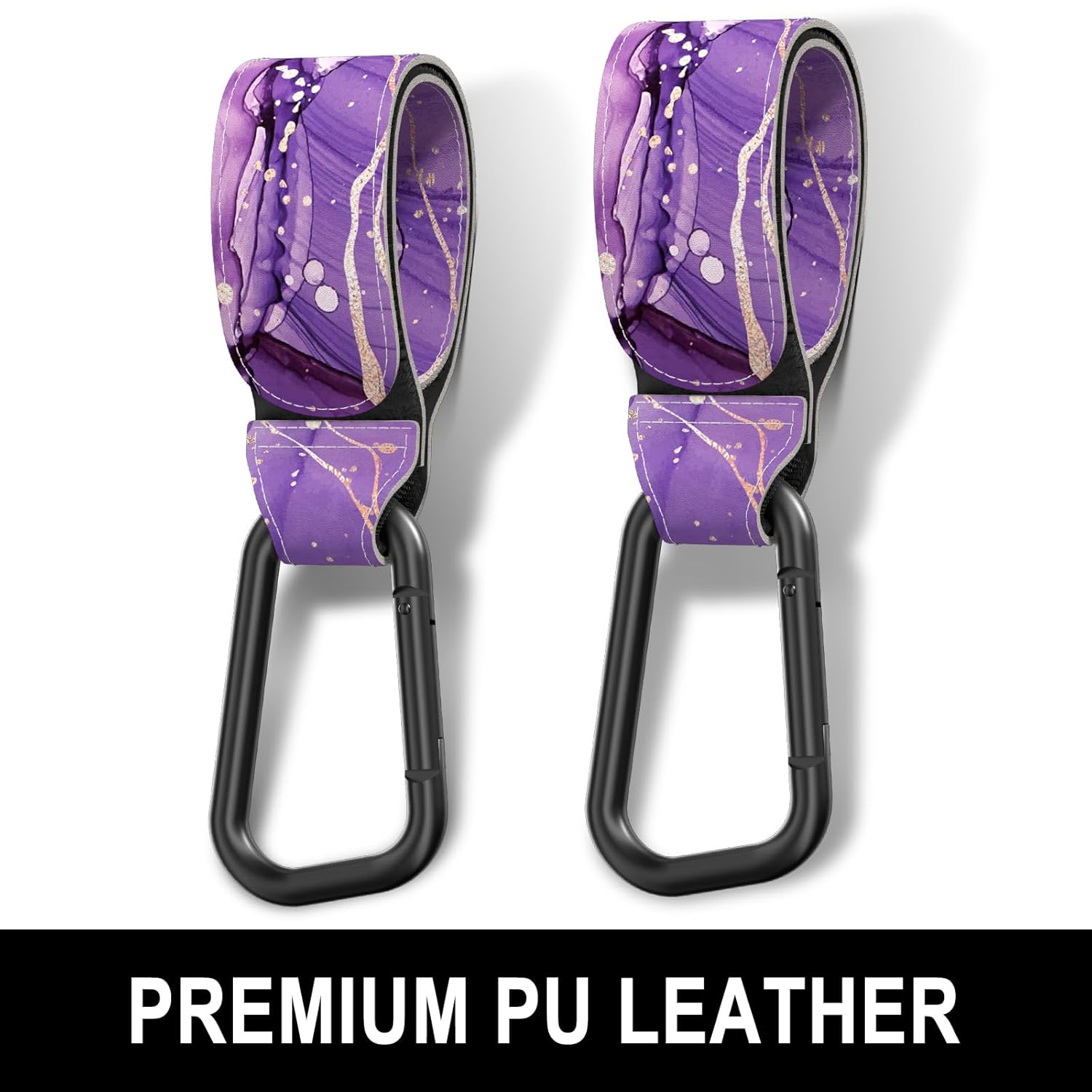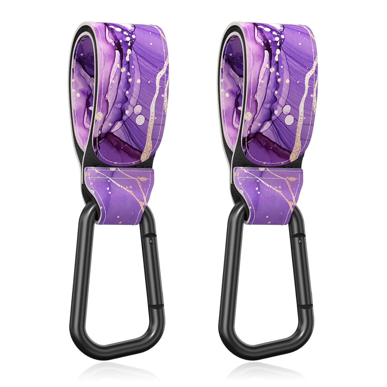 Baby Stroller Hooks for Hanging Bags, Universal Stroller Clips Accessories, Mommy Hook for Diaper Bag, Shopping Cart, Purse, Backpack - 2 Pack, Purple Marble