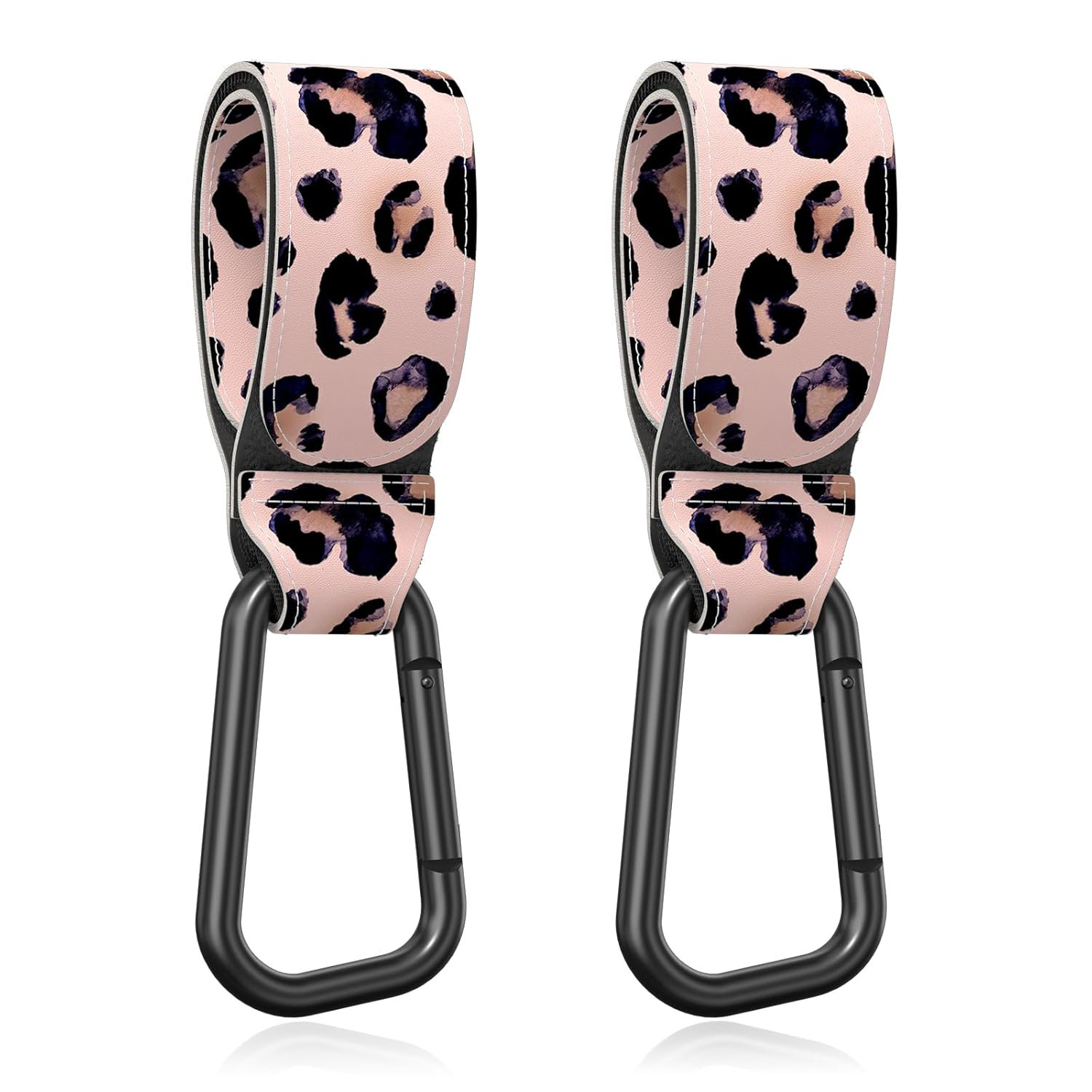 Baby Stroller Hooks for Hanging Bags, Universal Stroller Clips Accessories, Mommy Hook for Diaper Bag, Shopping Cart, Purse, Backpack - 2 Pack, Leopard Spots