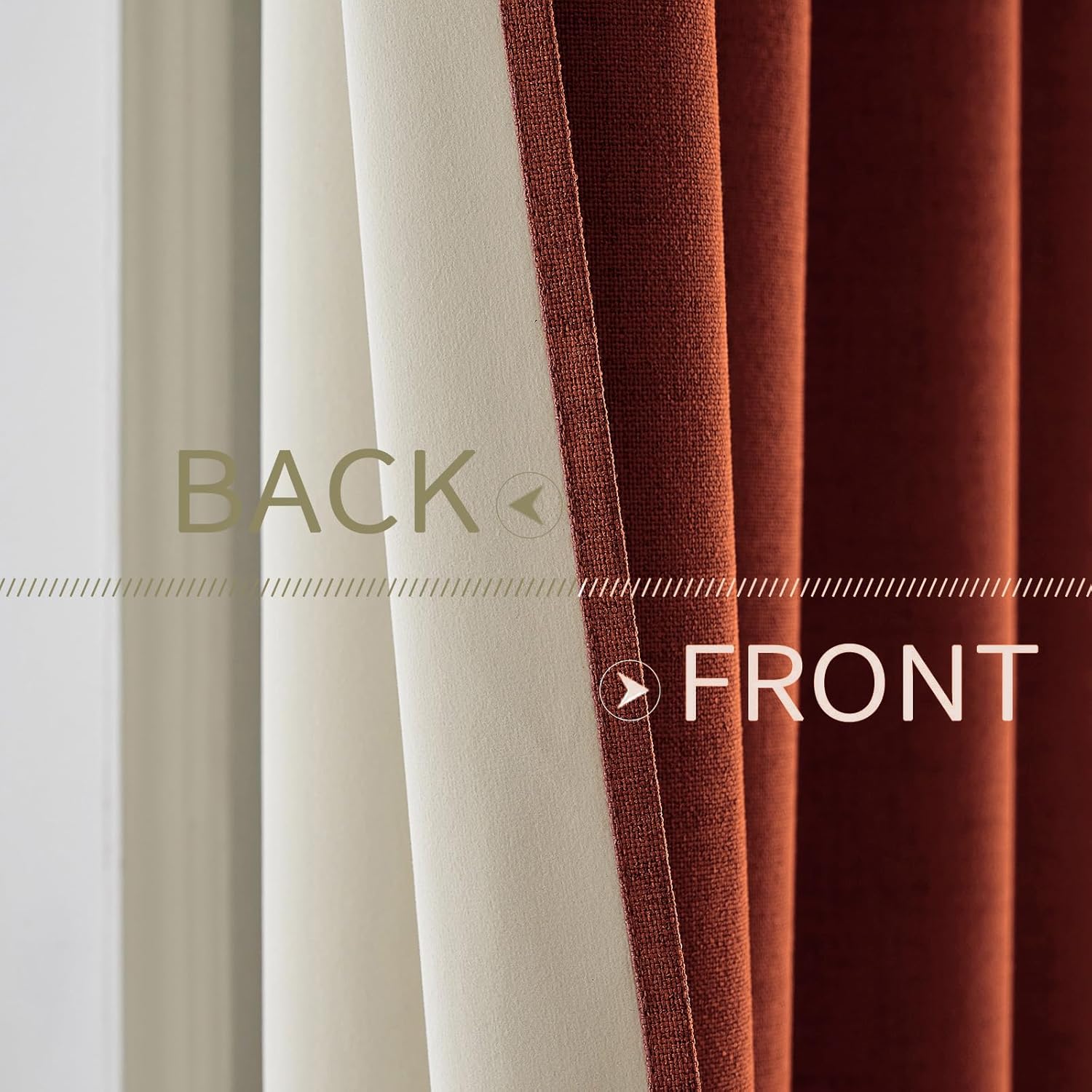 MIULEE Linen Curtains for Bedroom 100% Blackout Thermal Insulated Burnt Orange Grommet Room Darkening Curtains & Drapes Rust Terracotta Fall Decor for Living Room Nursery 52 x 90 Inch (2 Panels)