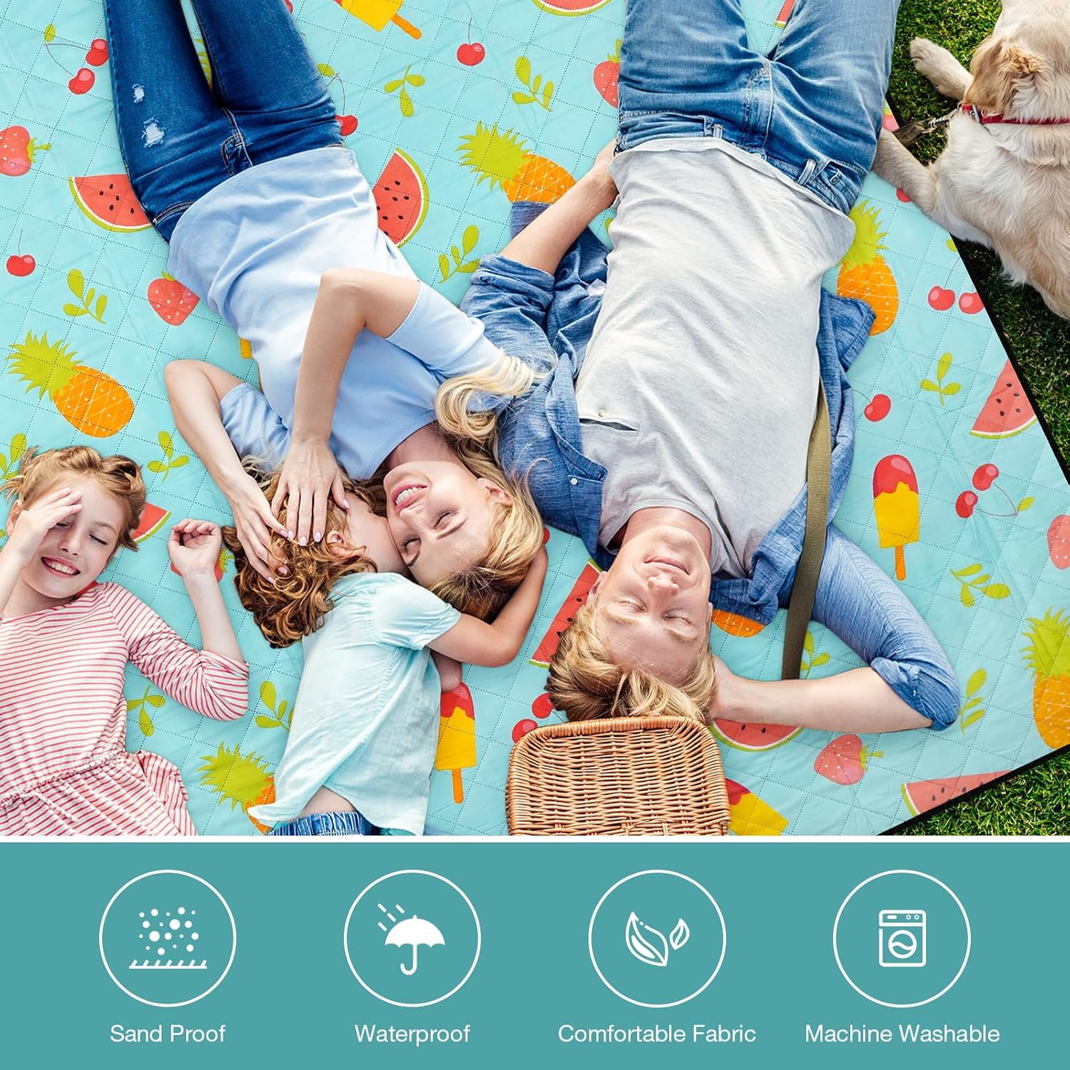 Picnic Blanket Extra Large 79" x 79", Washable Picnic Blankets, Camping Blanket with Portable Handle & Shoulder Strap - SummerFruits
