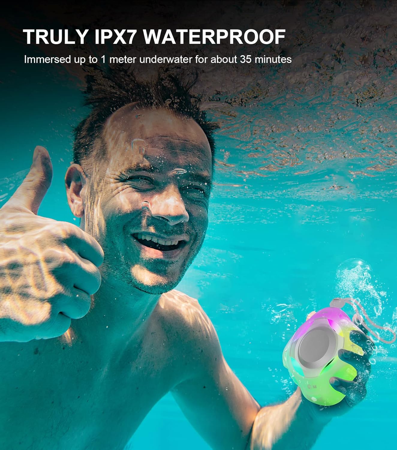 - [ IPX7 WATERPROOF & RUGGED DESIGN ] - The body of this wireless waterproof speaker is designed with a silicone wrap and a compact and sturdy body with drop resistance. After rigorous testing this waterproof shower speaker has true IPX7 waterproofness and can withstand complete immersion in one meter of water for 30 minutes and can even float on the water surface.It is the perfect gift for parents, men, women, friends.