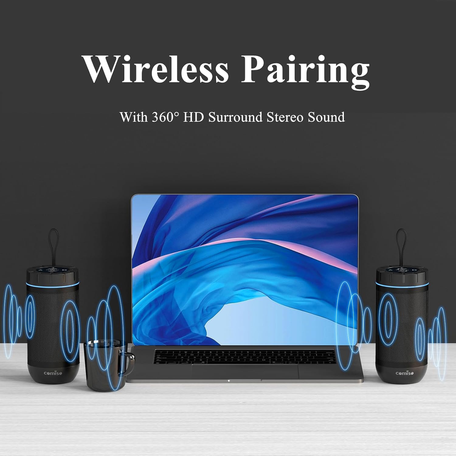 - [ TRUE WIRELESS STEREO PAIRING ] Pair two COMISO X26 speakers, you can achieve true wireless Bluetooth pairing for left and right channels separated. Just control the master device, then audio can be played in sync on both devices with double enhanced stereo sound. Enjoy more dynamic sound thanks to a powerful subwoofer for a truly immersive listening experience, Brings a real stereo sounds to your soul.