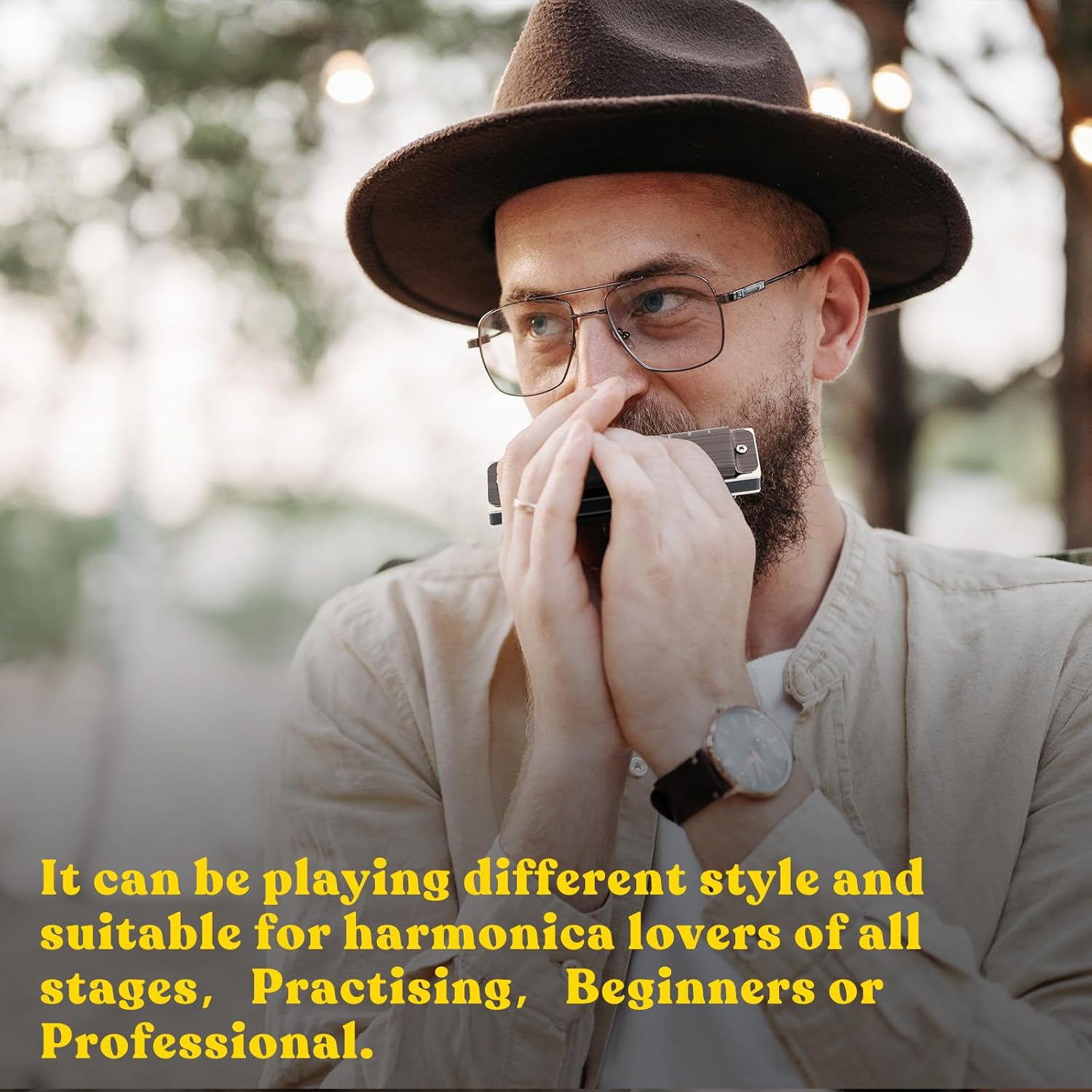 - 2.Easy to use: Airflow splitter and the built-in airflow splitter in the harmonica are conducive to maintaining stable airflow, making it easier for beginners to play easily and mastering more sound skills quickly.