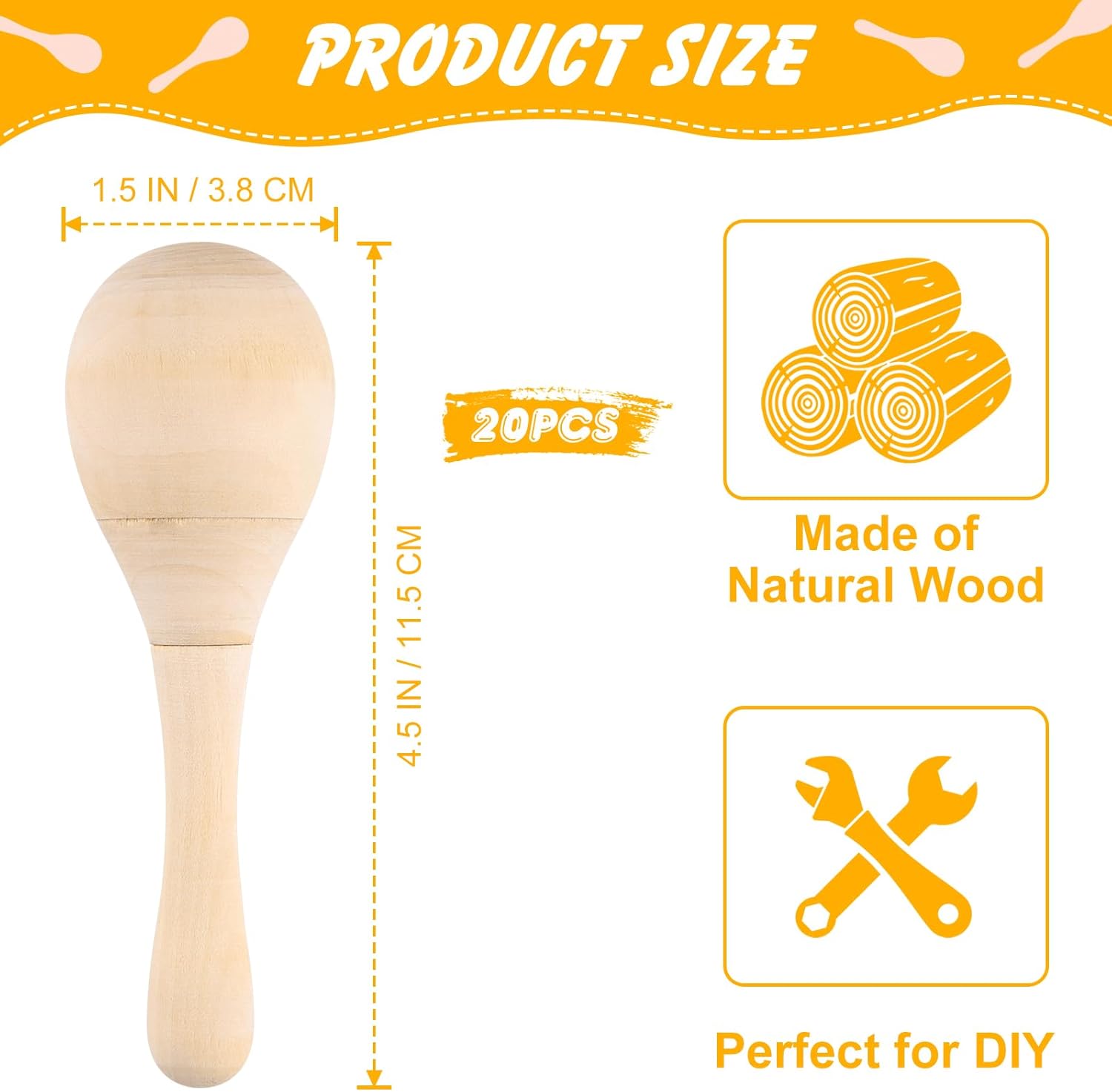 20Pcs DIY Wooden Maracas for Kids, Mini Maracas for Mexican Fiesta Party Favors with 12Pcs Multicolor Pens, Cinco De Mayo Party Supplies