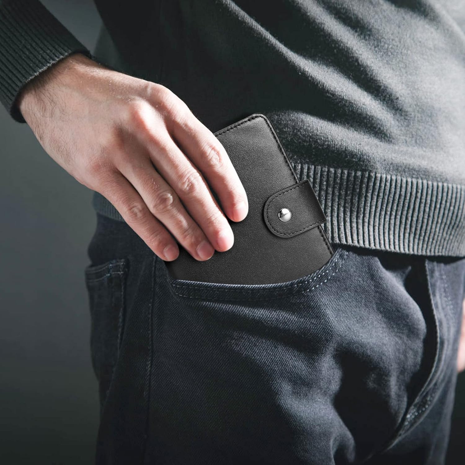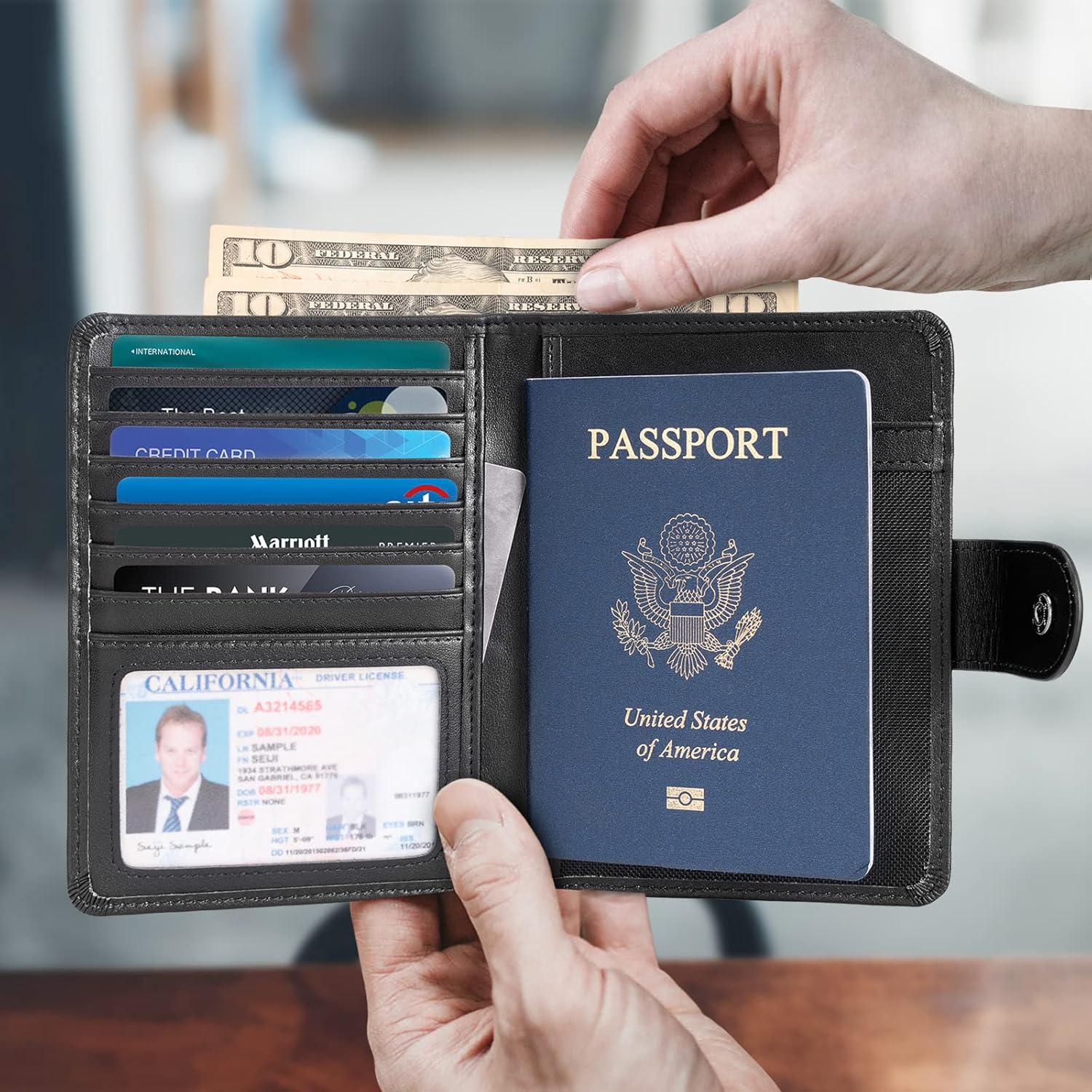 Polare Luxury RFID Blocking Leather Passport Holder Travel Wallet For Men and Women (Black(Snap Version))