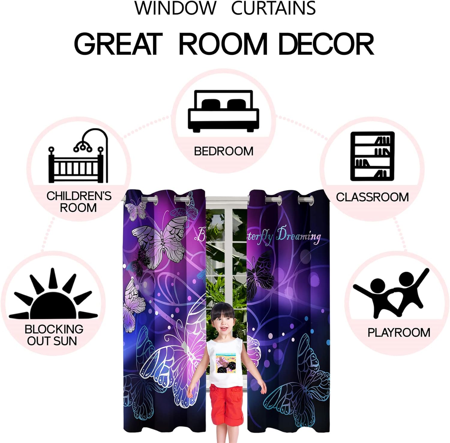 - Blackout and Thermal Insulating: Our Butterfly Curtain Panels are designed to block out sunlight and reduce noise, with thermal insulating properties to keep your room cool in summer and warm in winter.