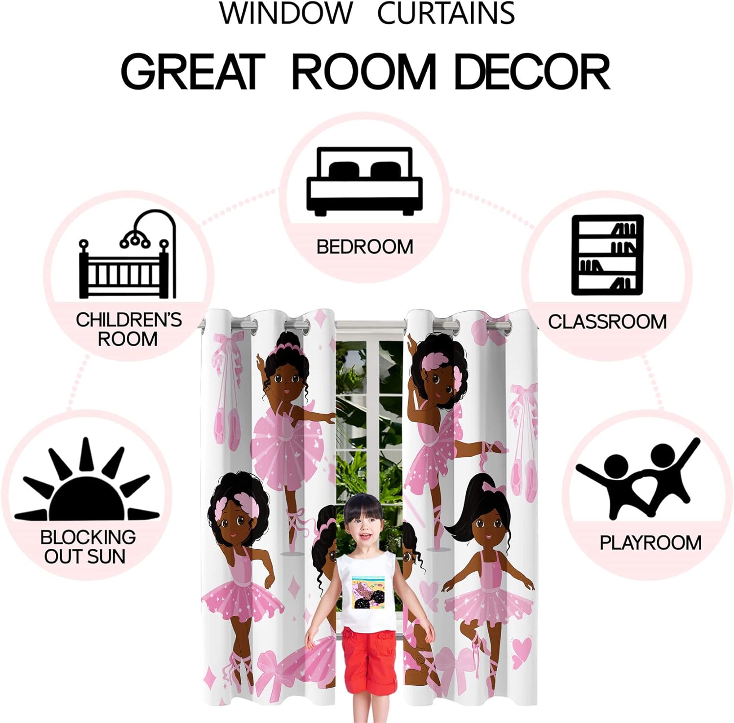Black Girl Blackout Curtains 2 Panels 63" Inch Drapes for Kids Nursery Bedroom Kids Blackout Curtains Cute Girls Themed Grommet Top Thermal Insulated Curtains for Nursery, 82" x 63"