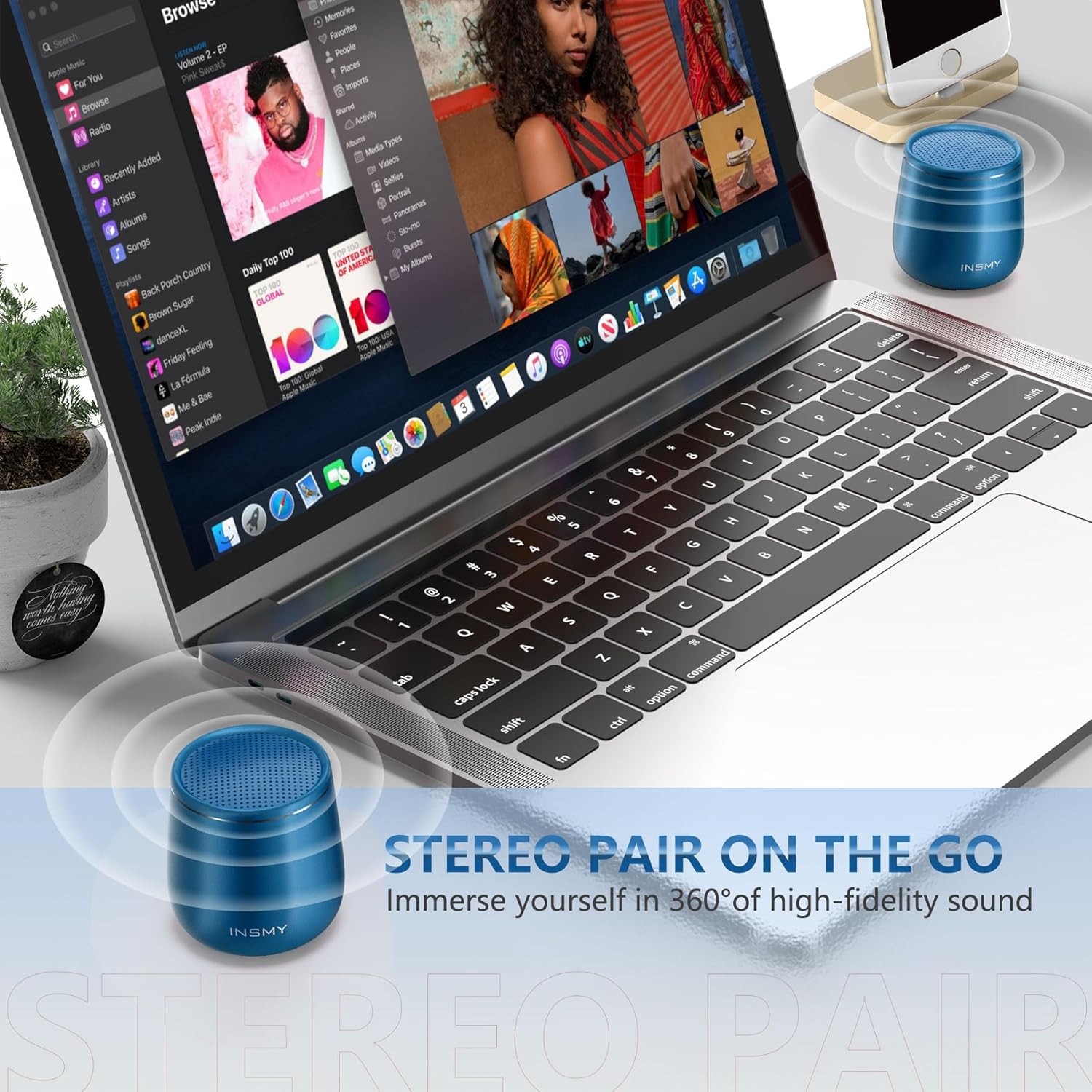 INSMY Small Bluetooth Speaker, Waterproof Mini Portable Wireless Speaker, Punchy Bass Rich Audio Stereo Pairing, Handheld Pocket Size, Built in Mic for Hiking Gift Laptop Tablet (Blue)