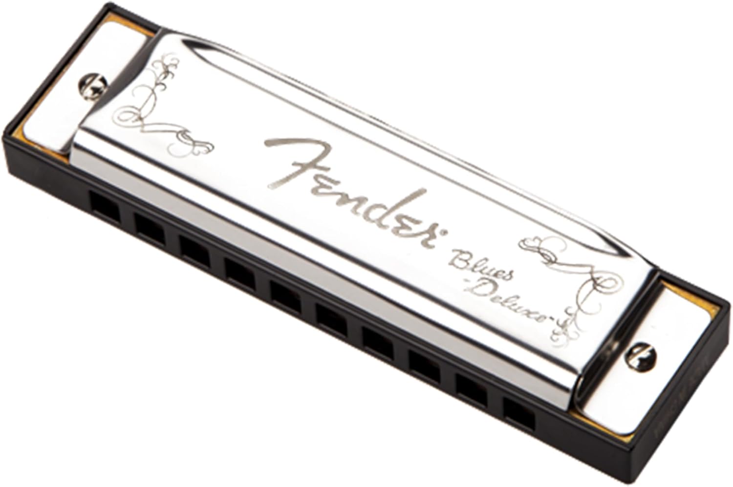 Fender Blues Deluxe Harmonica - Key of A Bundle with Carrying Case, Austin Bazaar Online Manual, and Polishing Cloth