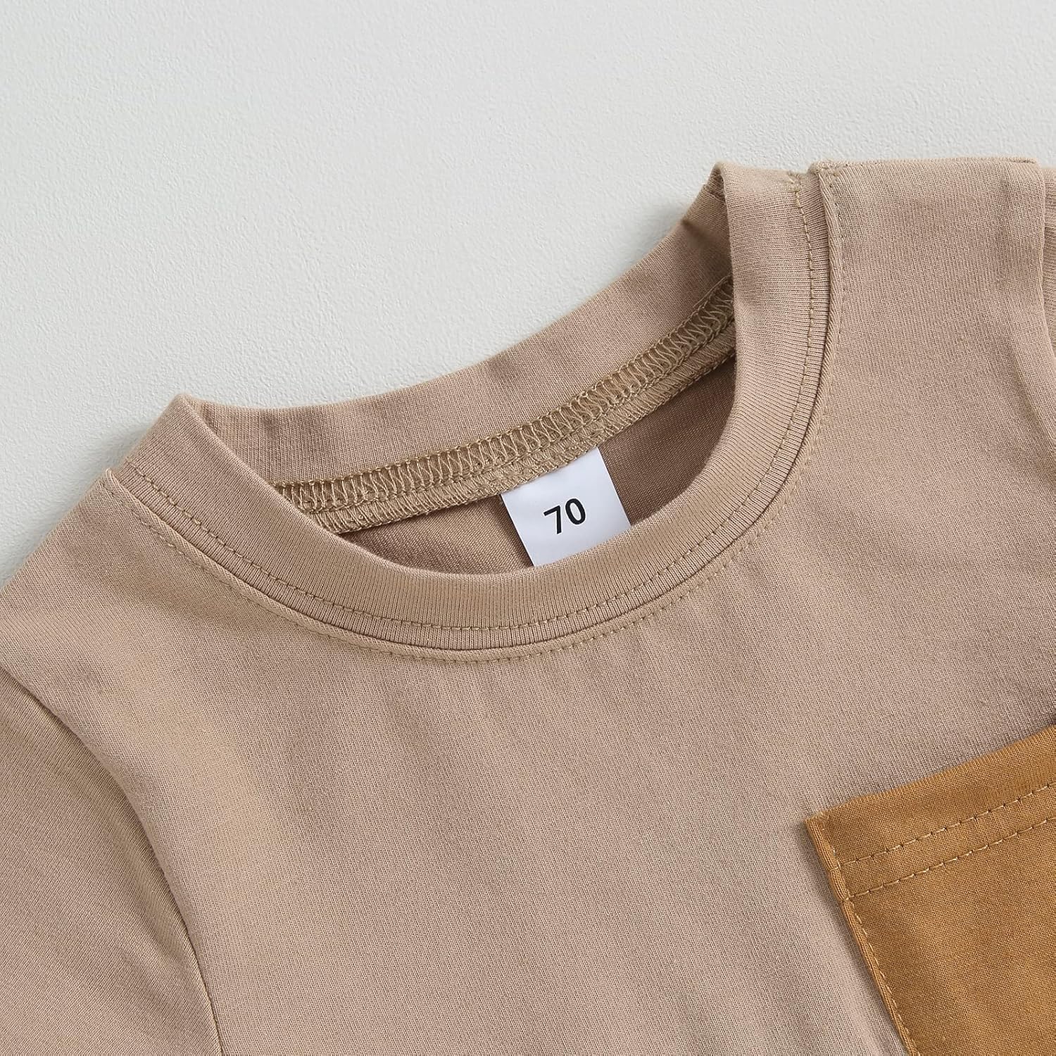 • Relax Crew Neck, One Pocket Front, Striped Pattern, Comfy Short Sleeve T Shirts Tee Tops, Elastic Waist with Drawstring Shorts, Side Pockets, Comfy and Cute Newborn Baby Boys Summer Outfits Clothes