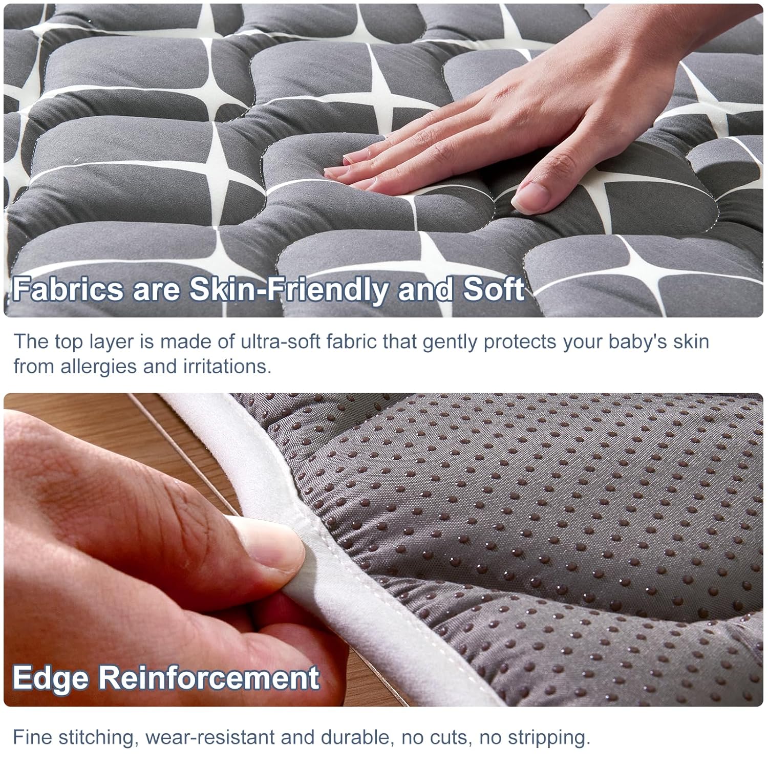 - Easy to clean: No worries at all about mats stained with urine, milk, juice and other stains, our mats are machine washable and can be washed in a large washing machine and dried at low temperatures, which is very convenient, especially for busy parents.