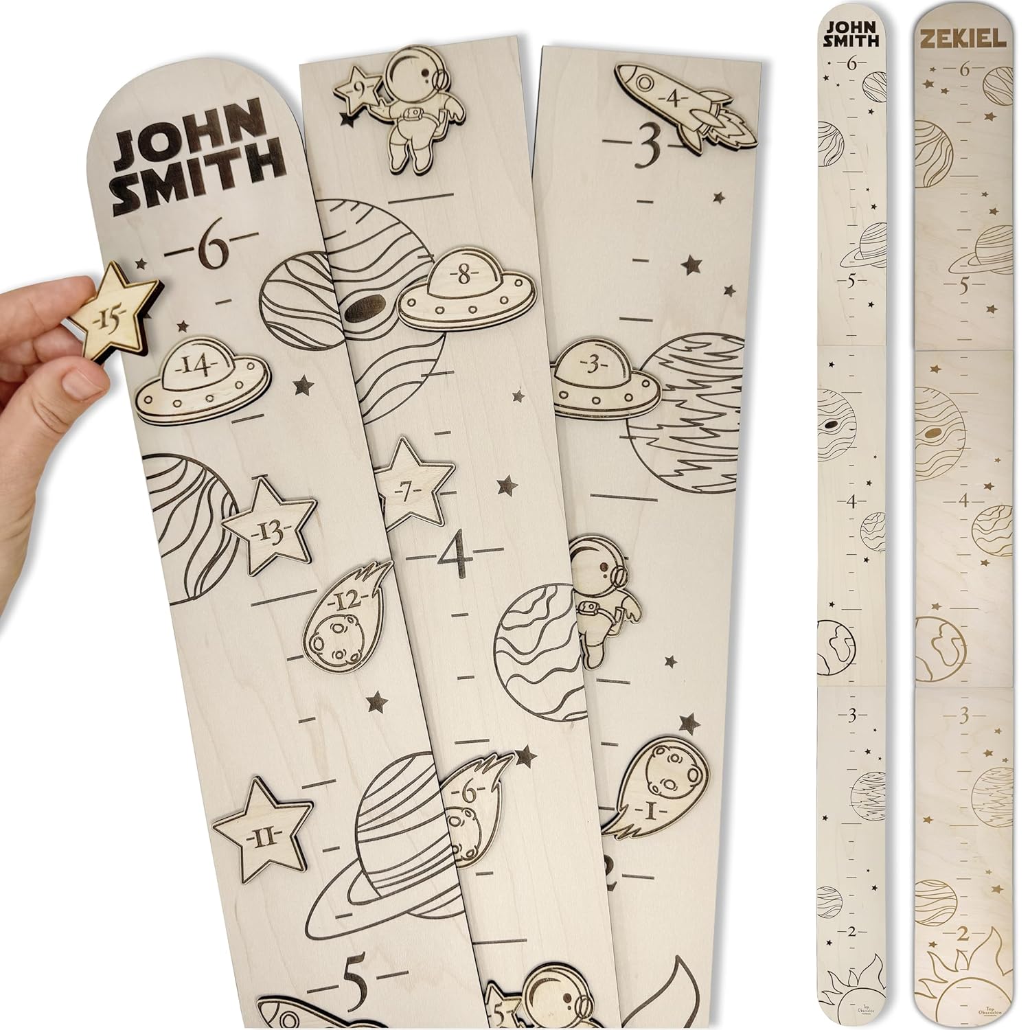 Wooden Height Chart for Wall - Personalized Boy Growth Chart, Custom Name Space Ship Theme Height Ruler Wood, Nursery Growing Wall Meter for Children, Large Baby Growth Chart Solar System, 2 Sizes