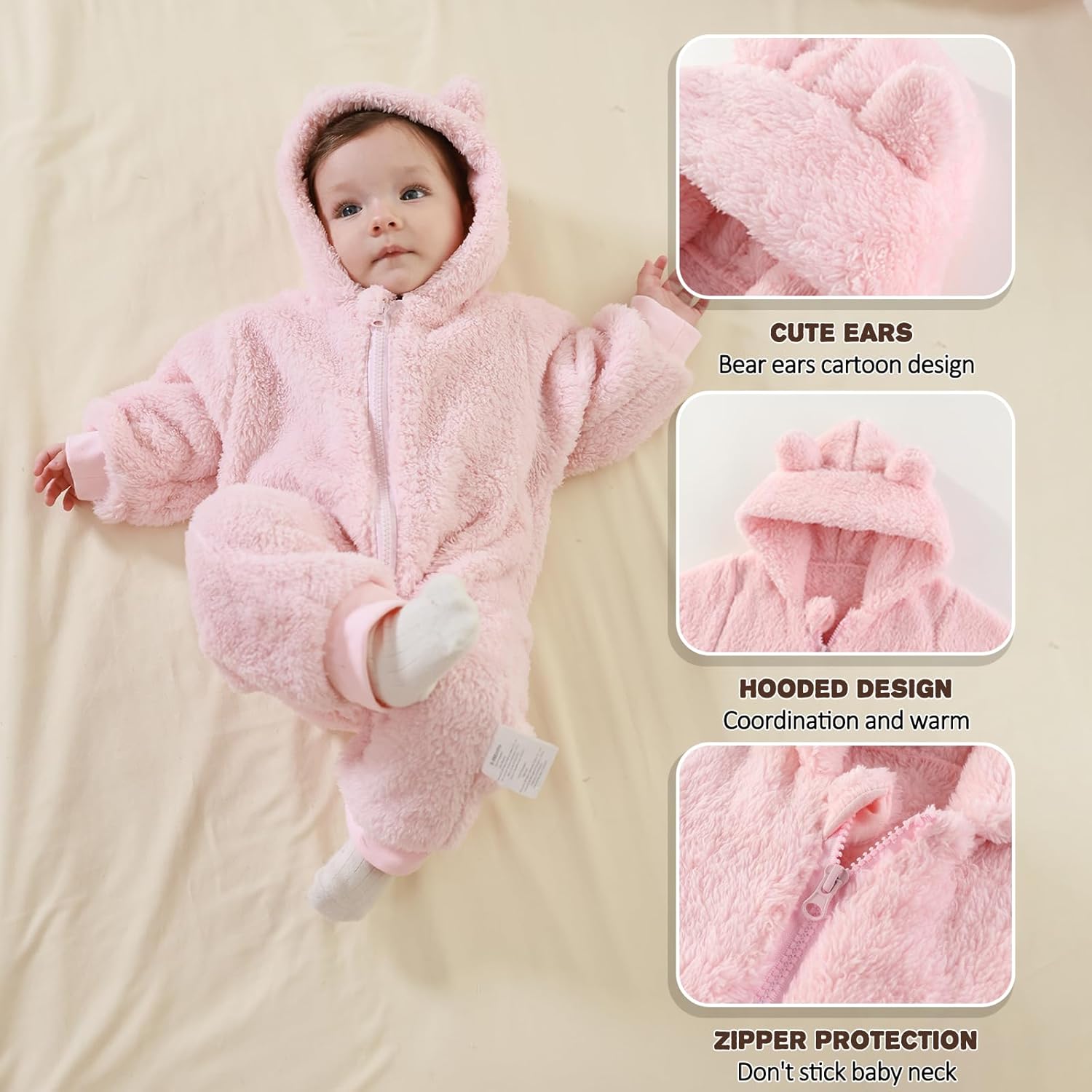 - Winter Warm Choice: There are 5 different colors of regular and thickened plus one romper baby bear outfit to choose from. The animal-themed baby fleece romper has an all-match solid design,a bear ear hood can protect baby's head from wind and cold