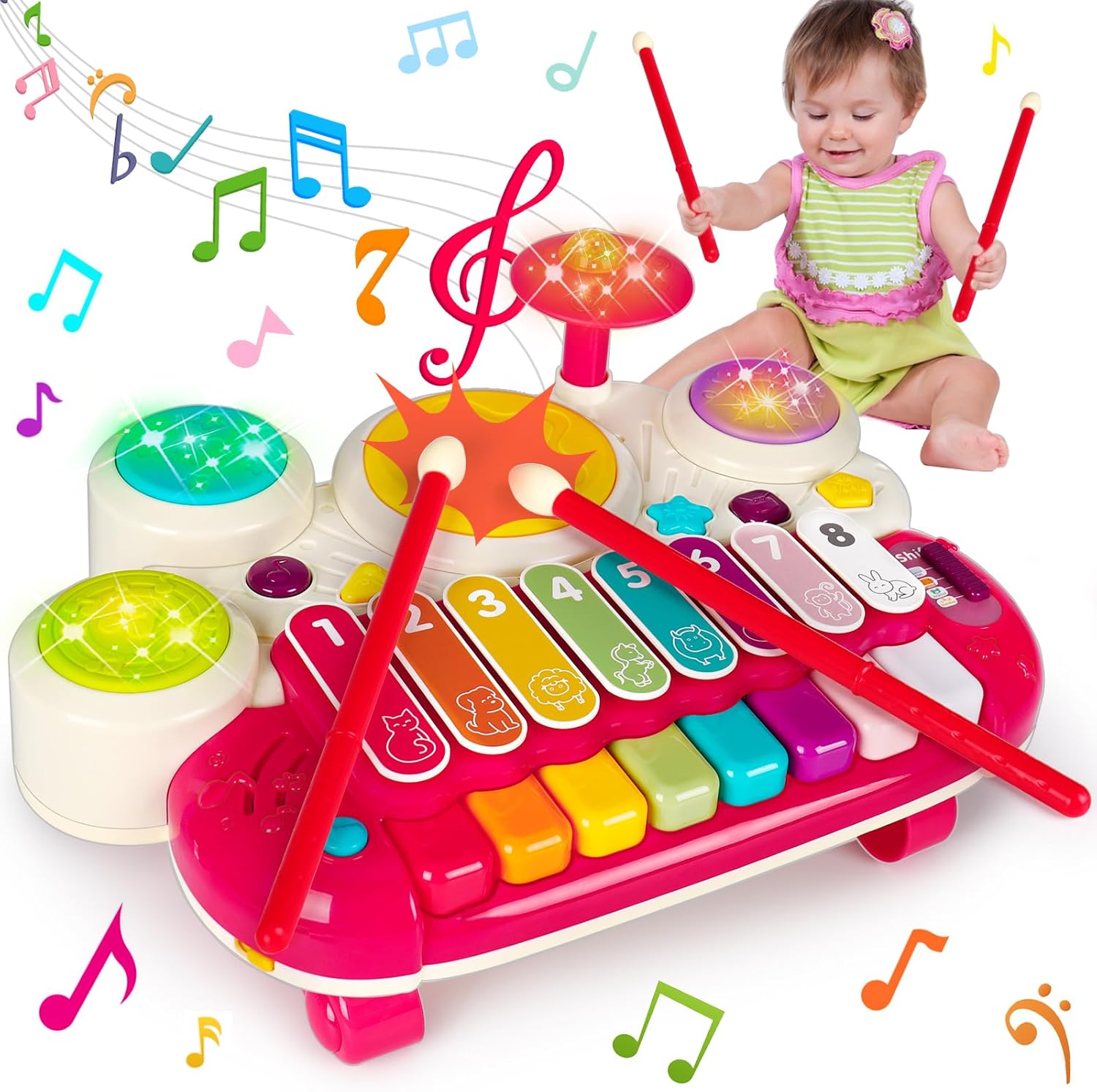 - High-quality Girl Toddler Toys: Our baby girl toys is made of high-quality materials, with smooth surface that make no harm to baby's hands. Soft lights to protect baby's and eyesight. The baby toys 12-18 months is recommended for toddlers and kids. Best baby toys for 1 1+ year old, drum set for toddlers 1-3, xylophone for toddlers 1-3, piano for toddlers 1-3.