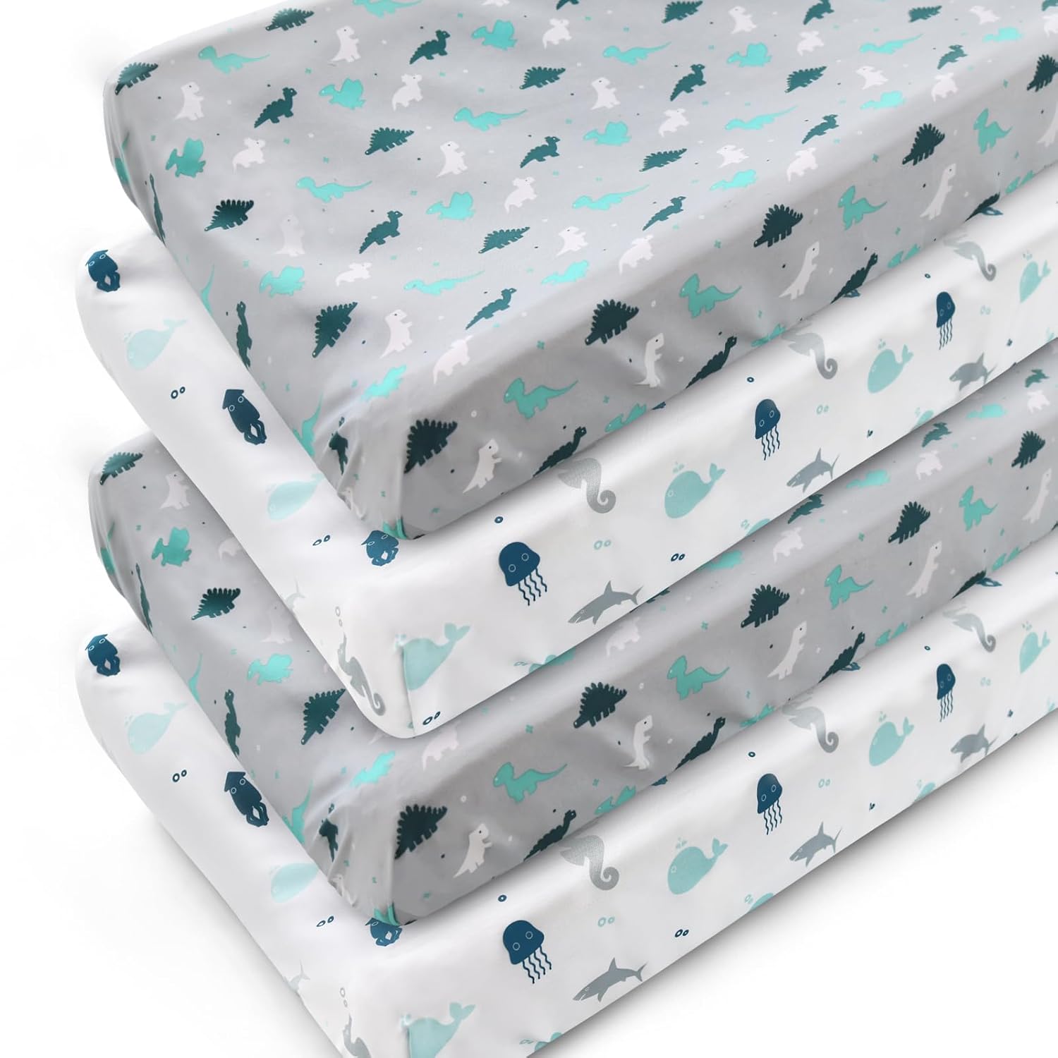 Changing Pad Cover for Boys Girls 4 Pack, Comfy & Breathable Changing Table Cover for 32''x16" Changing Table Pads, Diaper Changing Pad Cover, Dinosaurs & Ocean