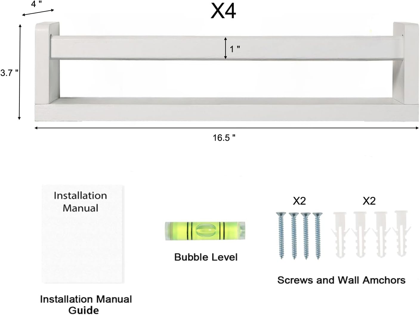 - What You Get: As a professional nursery shelf manufacturer. We’re offering you a durable, classic, and functional kids book shelf. You'll get 4 well-designed shelves of the same size. Dimension:16.5L x 3.7H x 4.0W inches.