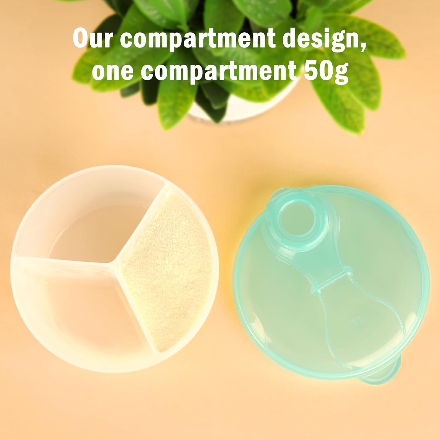 - Three Compartments Design- This formula container divided into three sections to help pre-measure milk powder. The capacity of each compartment is 100ML, totaling 300ML.