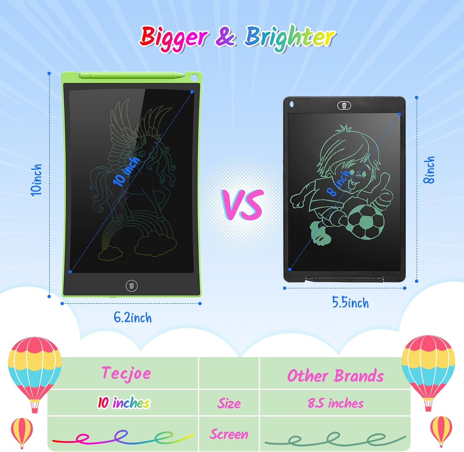 TECJOE 2 Pack LCD Writing Tablet, 10 Inch Colorful Doodle Board Drawing Tablet for Kids, Kids Travel Learning Toys Christmas Birthday Gifts for 3 4 5 6 Year Old Boys and Girls Toddlers