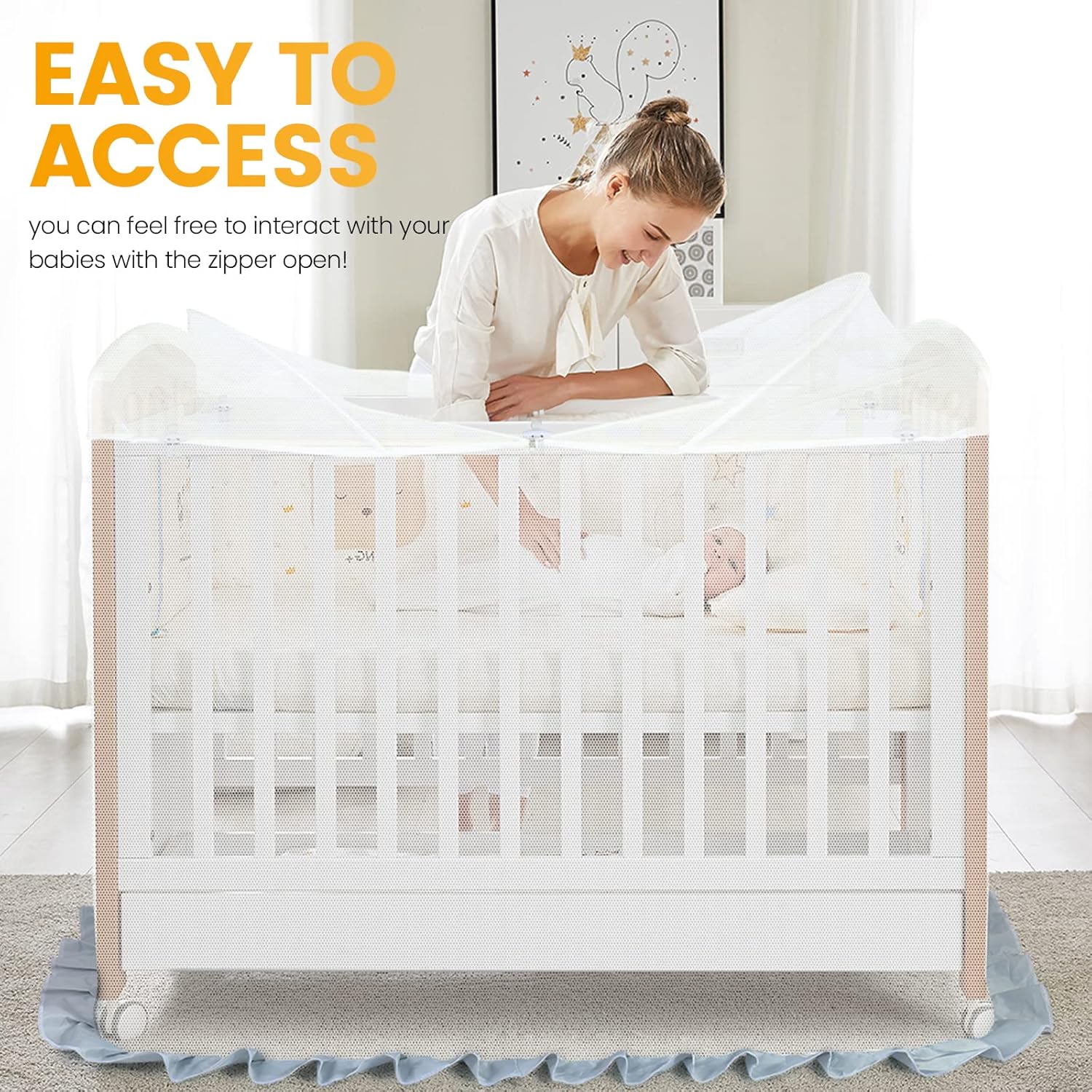 - ๐๐๐๐ ๐๐๐๐๐๐: Stabilise the mosquito net in the baby crib with 8 fasteners and make it less likely to shift or fall off. Besides, the bottom ruffle design prevents the ๐ฆ๐จ๐ฌ๐ช๐ฎ๐ข๐ญ๐จ๐๐ฌ from entering the crib from underneath