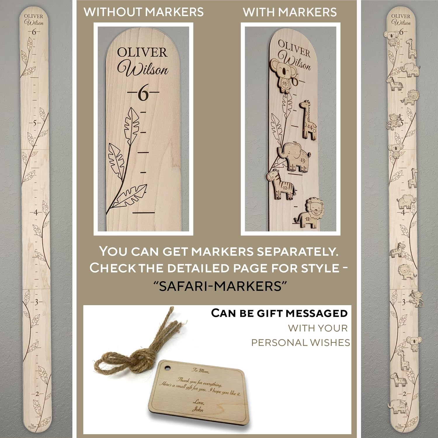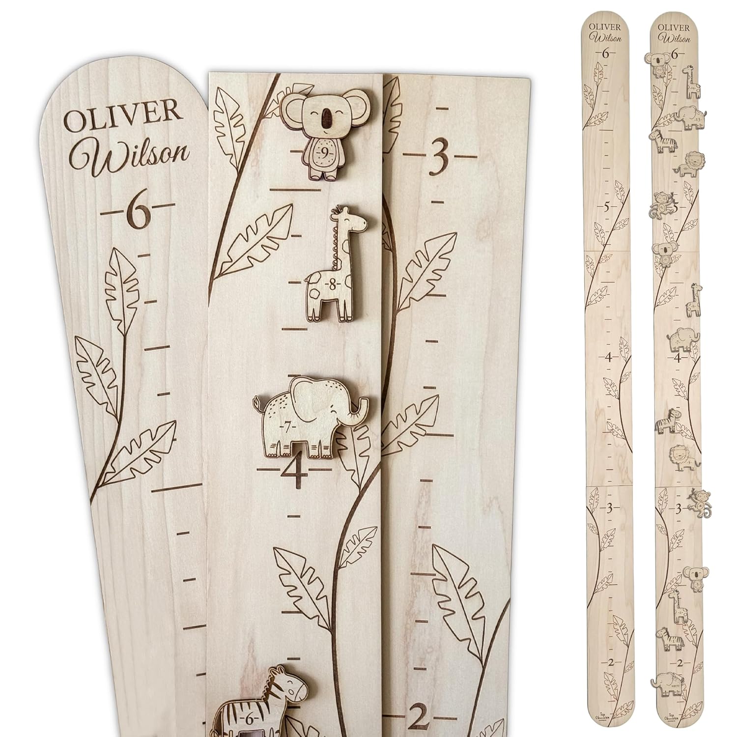 - Customizable: personalize animals growing chart with child's name or a short phrase like "watch me grow". If only one name is provided, it will be engraved in cursive by default (similar to 'Wilson' in the photos), unless other preferences are indicated. Elevate jungle theme kids room with this cute and customizable height chart, creating lasting memories as they measure their growth