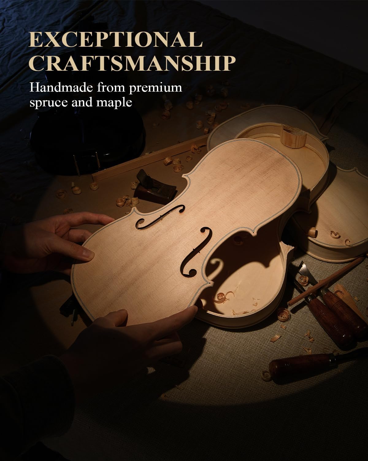 - 🎻EVA-330 is totally a handmade instrument, inlaid edge line, not a drawing line. Inlaid edge violin line, in the process of slow aging of the violin, has a protective effect on the violin board. At the same time, the violin could withstand slight impacts