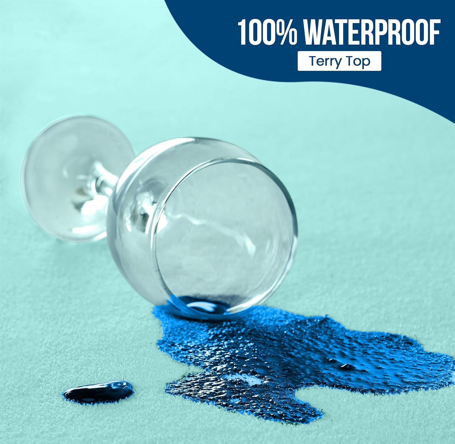 - Waterproof Terry Top - The mattress protector protects your mattress from unwelcome spills and keeps your mattress clean and safe. High-quality TPU backing secures your mattress from the top and resists any leakage into the mattress.