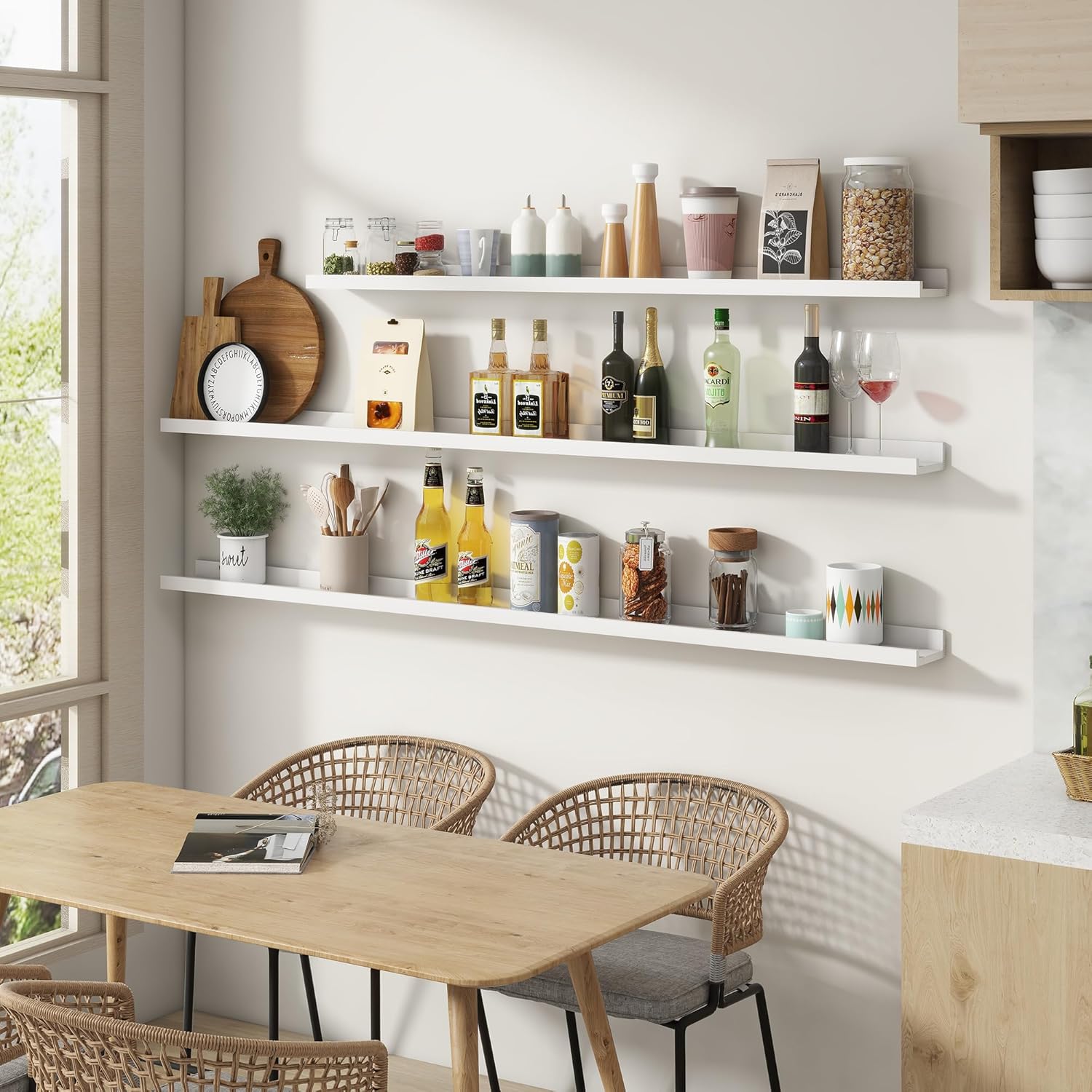 Picture Ledge Shelf for Wall, 48 inch Solid Pine Wood Nursery Book Shelves 2 Packs, Floating Ledge Shelves for Kids' Room Bedroom Bathroom Living Room Photo Frames Office Nursey Wall Decor, White