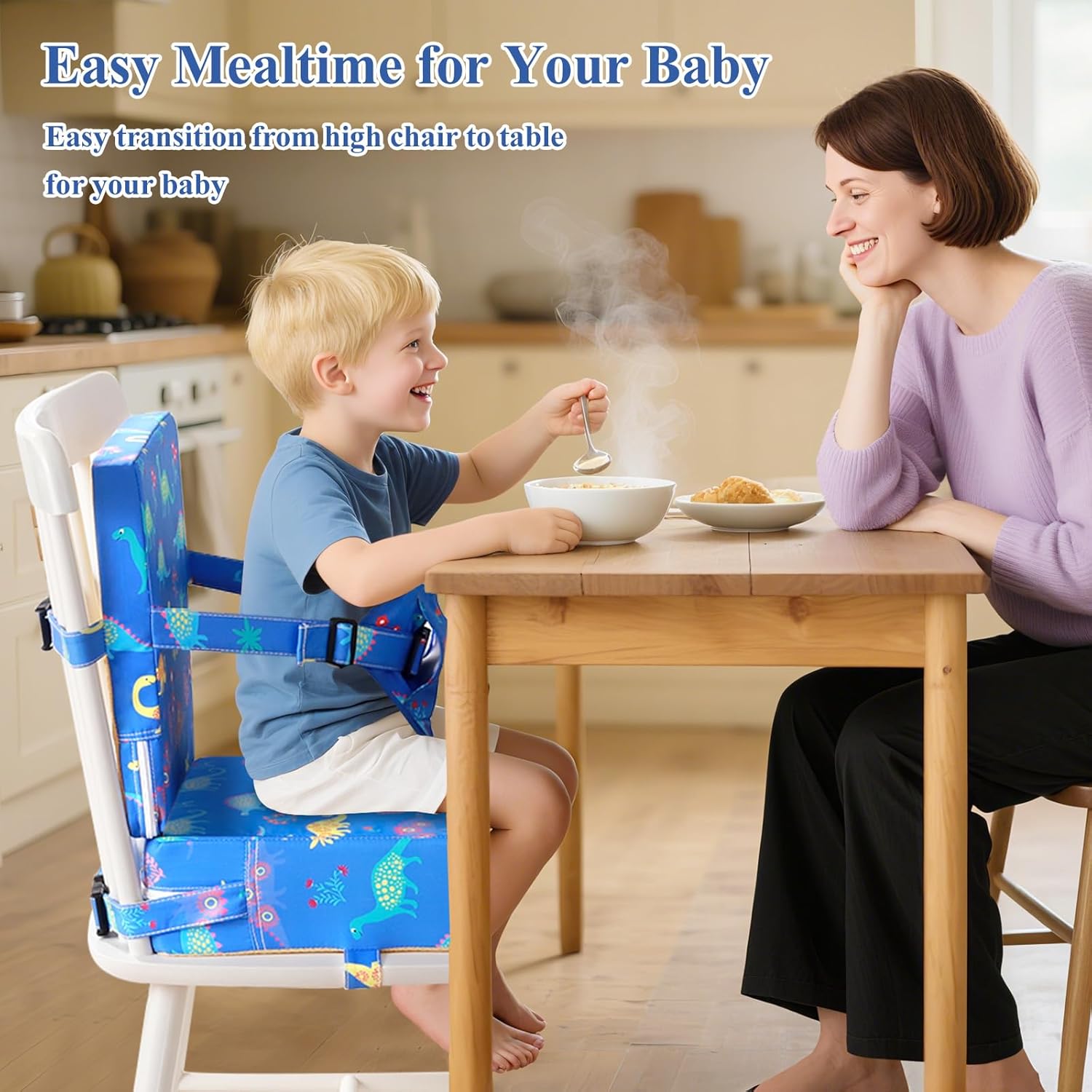 Toddler Booster Seat for Dining Table, Dinosaur Booster Seat for Table with Backrest and Adjustable Seat Belts Non-Slip Bottom Portable Booster Seat Increasing Cushion for Kid Baby Eating Travel Home