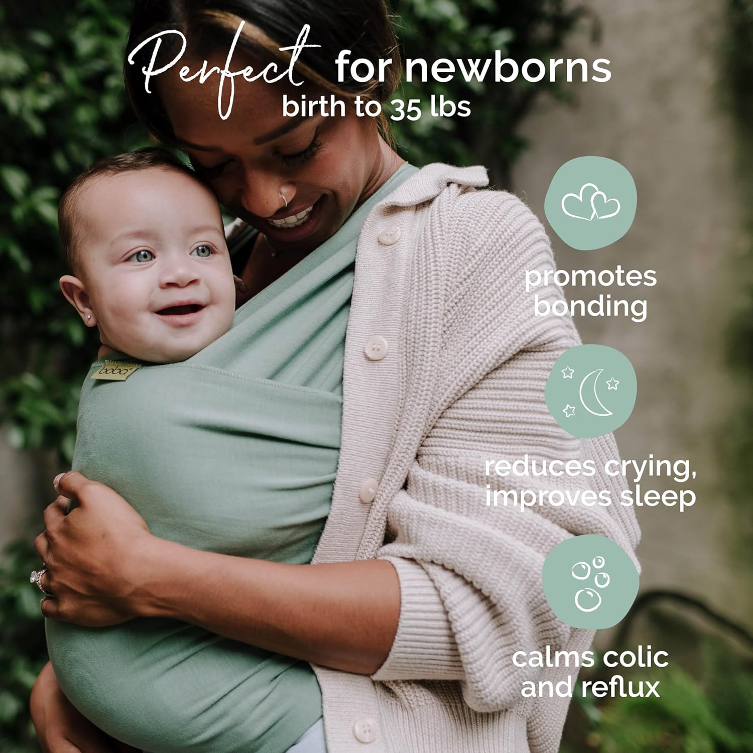 Boba Baby Wrap Carrier – Original Baby Sling Carrier for Newborns (7–35 lbs), Soft, Secure, Hands-Free & Ergonomic, Ideal for Comfortable Bonding, New Parents (Sage Green)