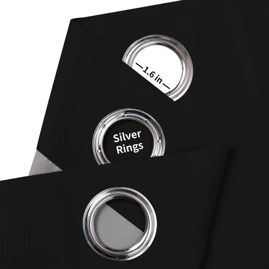 Joydeco Black Blackout Curtains 96 Inches Long for Living Room, Grommet Solid Black Curtains 96 Inches Long for Bedroom, Room Darkeing 96 Inch Black Out Curtains 2 Panels for Bedroom