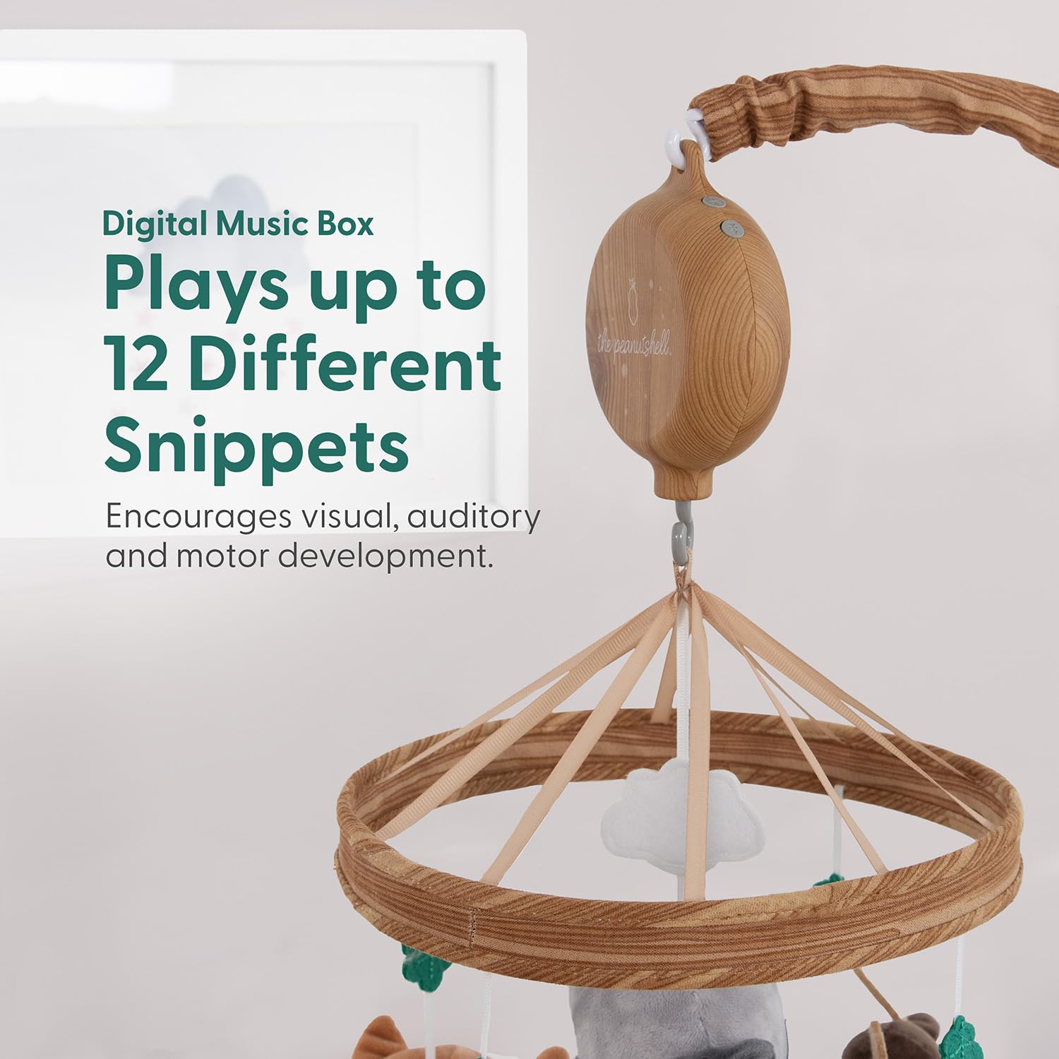 The Peanutshell Crib Mobile for Boys or Girls - Woodgrain Musical Baby Crib Mobile with 12 Lullabies, Whimsical Woodland Baby Whimsical Woodland Nursery Decor
