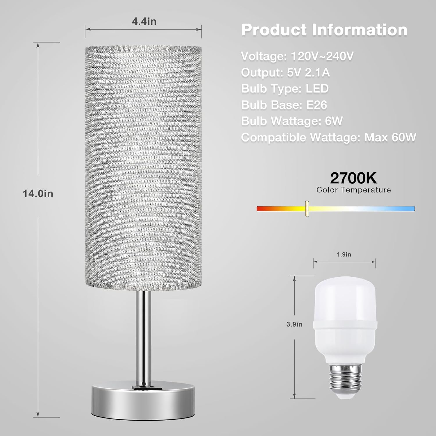 - 【 Small Lamps for Small Spaces 】- These basic cute lamps have a simple design, it is very suitable to decorate anywhere in your home, especially bedroom, dorm, living room, study room, guest room, kids room and so on. With a grey fabric shade and silver metal base, the small table lamp is exquisitely crafted and ideal as a gift for family and friends.