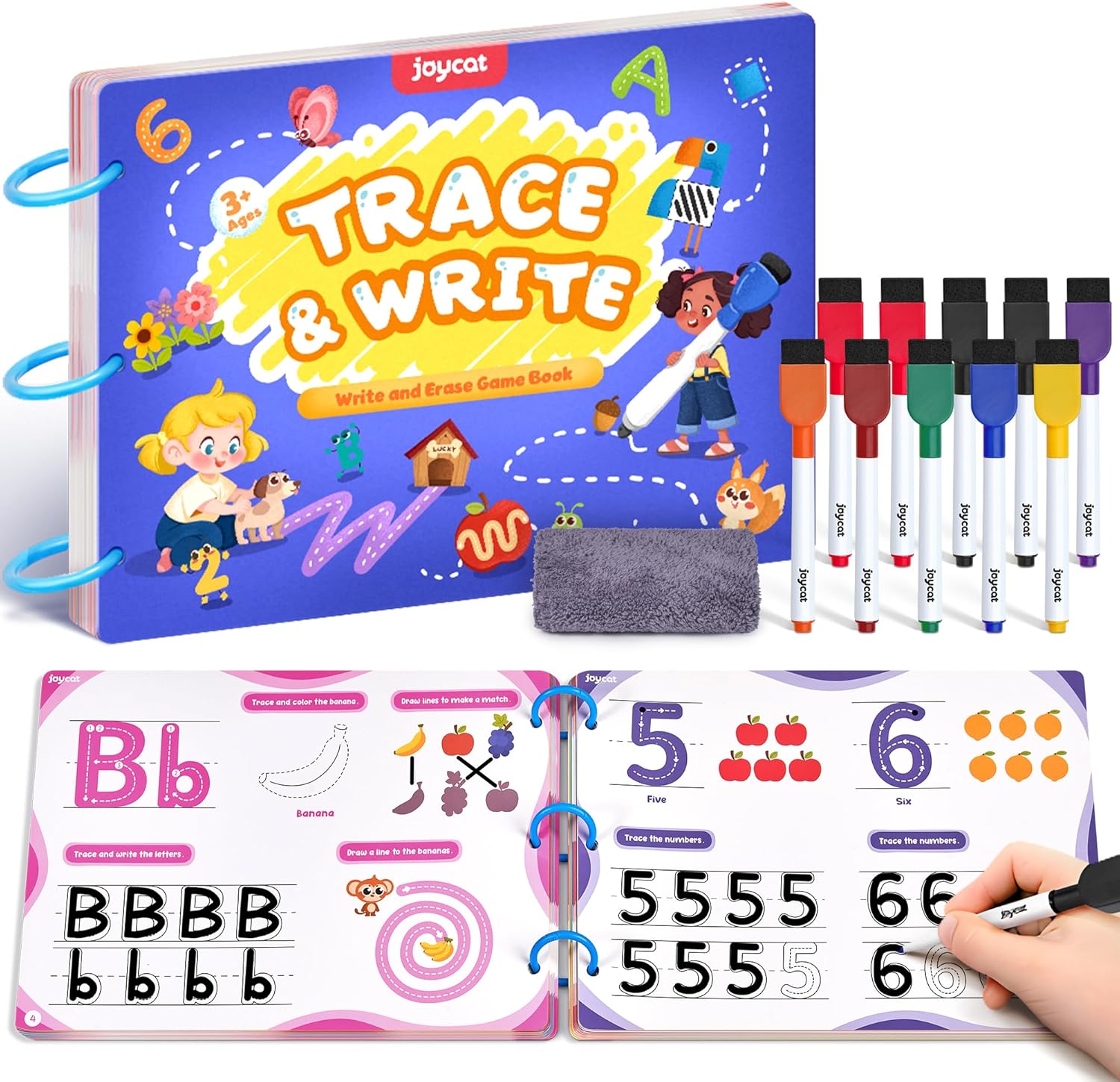 JoyCat Preschool Learning Activities 48 Reusable Pages, Handwriting Practice for Kids Toddlers, Tracing Letter Number Workbooks, Educational Autism Busy Book, Learning Gift Toys for 3 4 5 Year Olds