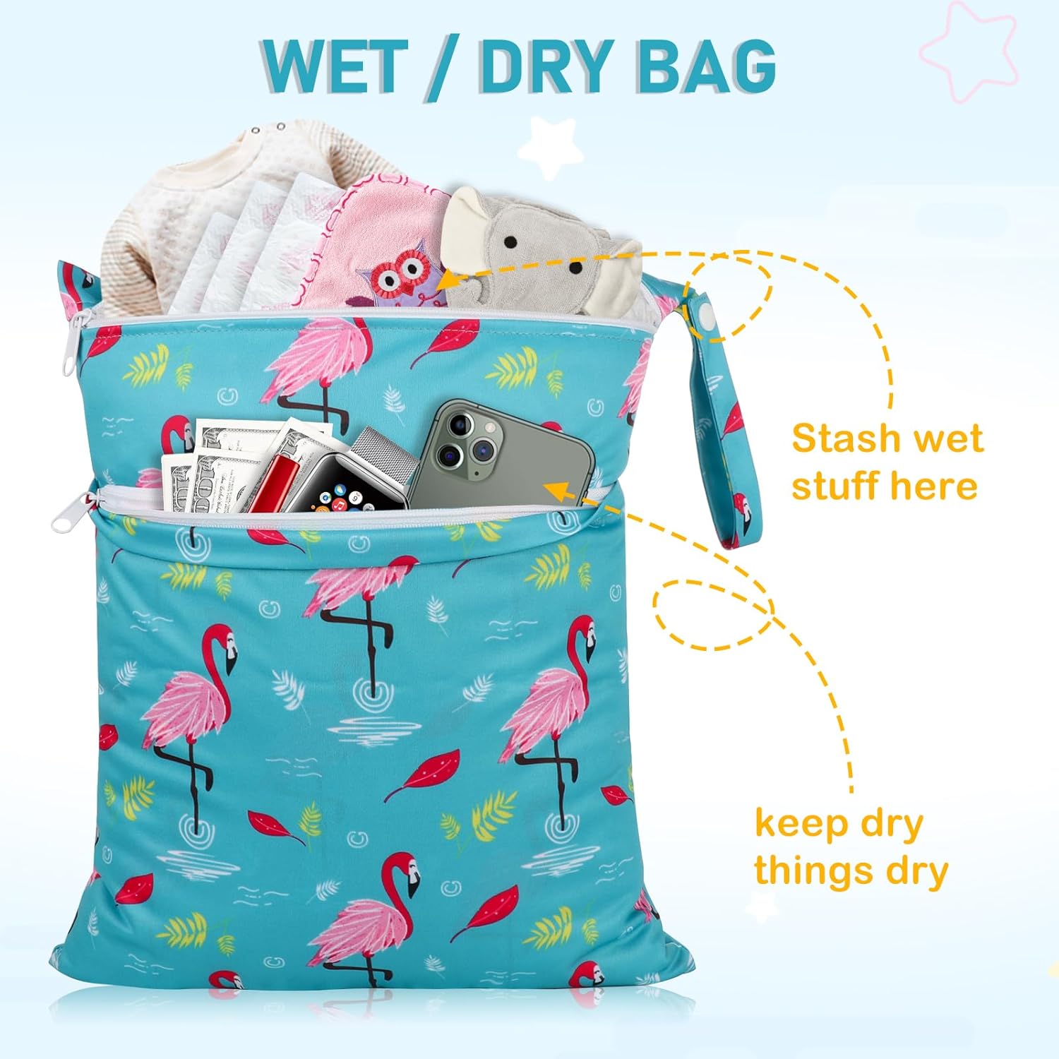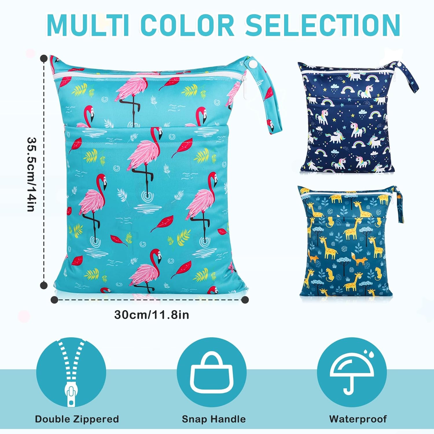 Angel Love Wet Bags for Baby, 3 Pack Wet Dry Bags for Baby Cloth Diaper, Wet Bathing Suit Bag Waterproof with Two Zippered Pockets, Washable Wet Bag for Swimsuit Travel Beach Pool Gym for Wet Clothes