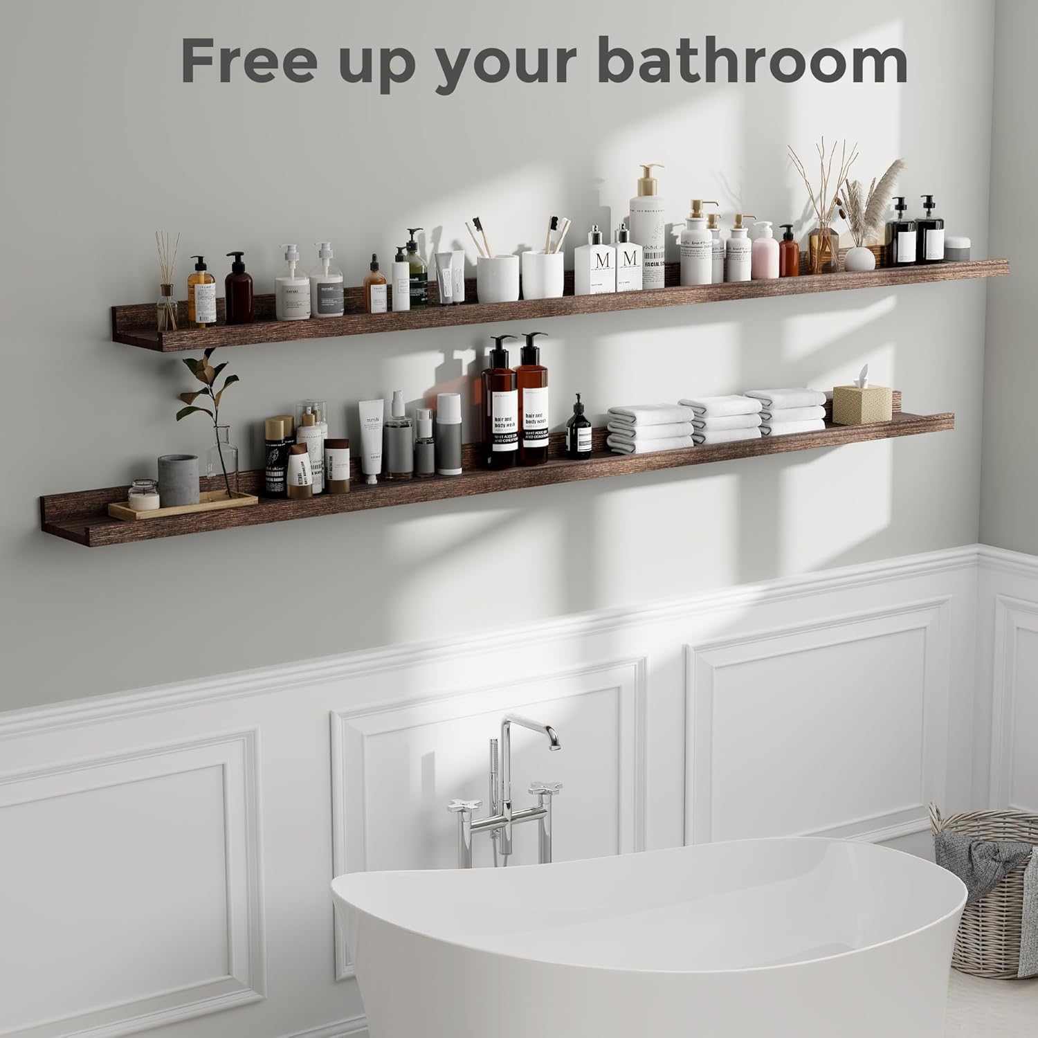 - ăSuitable for All OccasionsăThe sleek, simple design of wall mounted shelves allow them to match with nearly any aesthetic. The storage shelf can help to declutter or free up counter space in your kitchen and Bathroom to make places much tidier and neater - from keeping seasoning, spices bottles and wine glasses in a kitchen area to organizing hand towels, toiletries, essential oil in a bathroom.