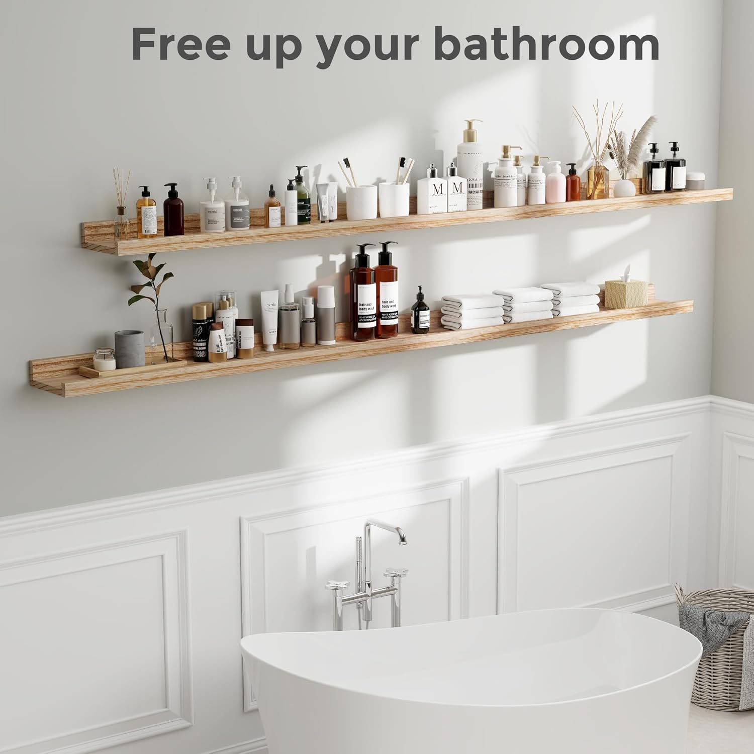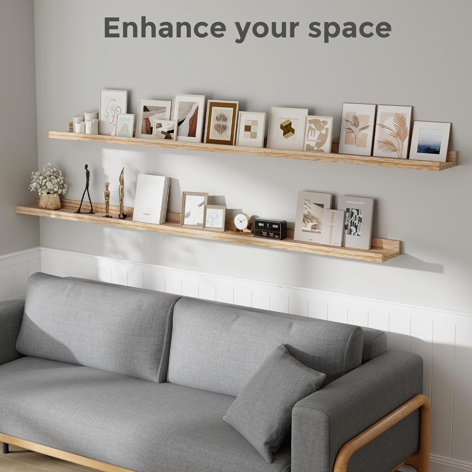 Fun Memories 72 Inch Floating Shelves for Wall with Lip, Natural Wood Long Picture Shelves Photo Shelf with Ledge, Rustic Wall Mounted Long Shelves for Home Decor & Storage, Set of 2