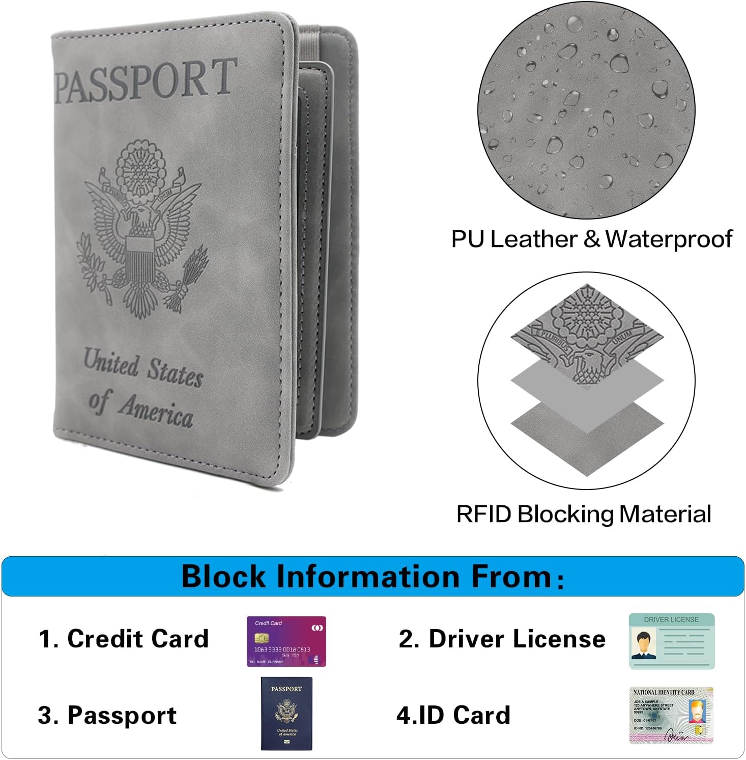 Melsbrinna RFID Passport Holder for Travel, Unisex Adults, Grey, PU Leather, RFID Protected, Passport Cover