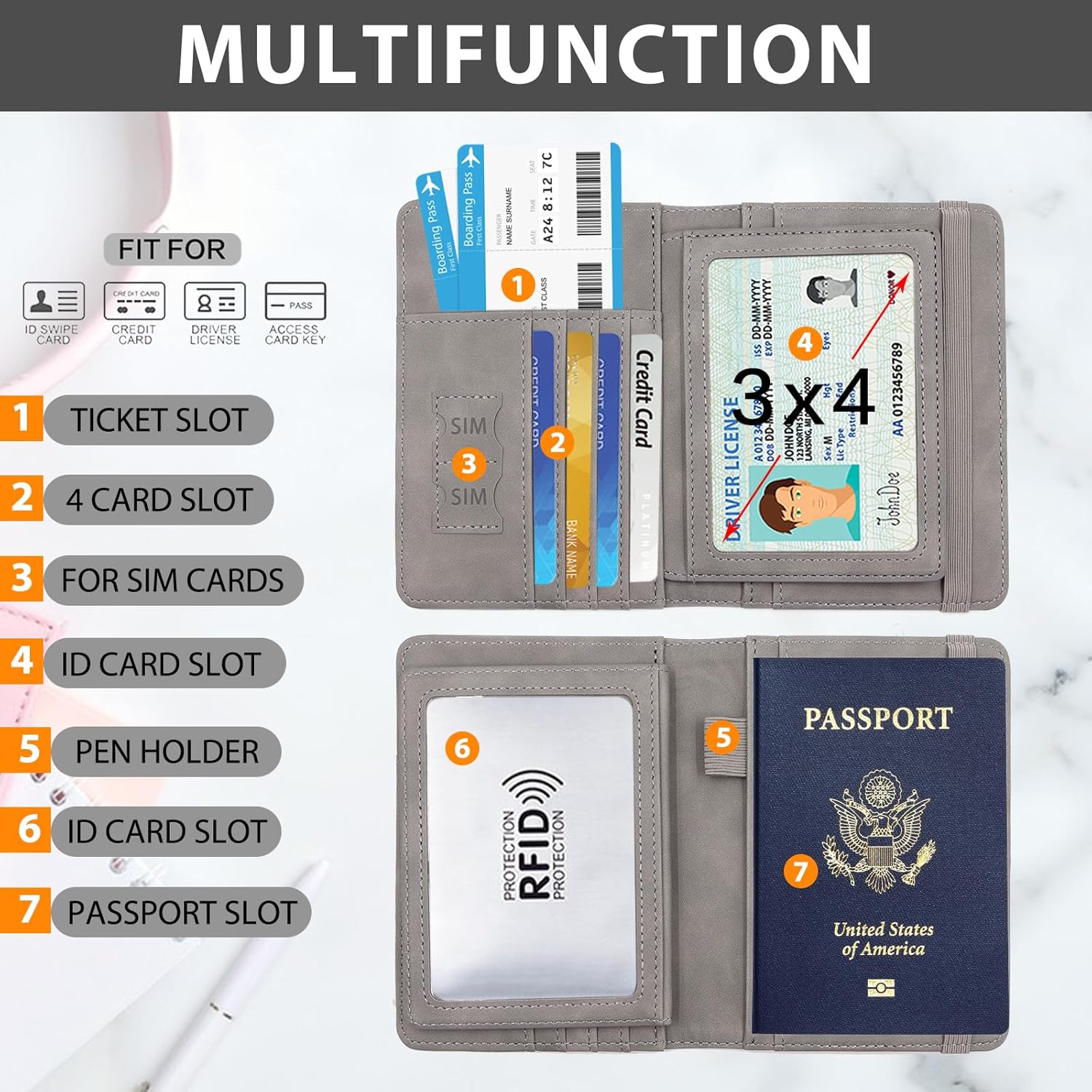 - 【Snap Button Closure and Security Protective】The passport holder with the hidden magnetic snap button closure design, which is safe and reliable to protect your travel items from being lost,to provide dual protection.Besides,RFID blocking shield material inside, Our passport case has a material engineered specifically to block 13.56 MHz or higher RFID signals and protect our important private information stored on your passport and credit cards from unauthorized scans.
