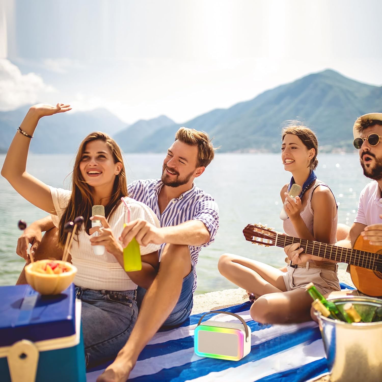 - Small but Mighty— The karaoke is designed in two parts of the portable bluetooth speaker and wireless microphone,the speaker and Mic set that equipped with built-in 10W audio drivers and advanced digital signal processors to produce high-performance optimized sound.The portable speaker supports bluetooth connection ,TF card and 3.5mm audio input three Playing modes.