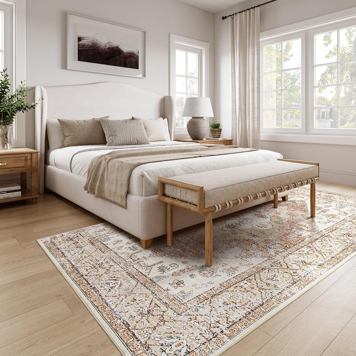 Lahome 5x7 Boho Machine Washable Area Rug (Non-Slip Lightweight Low-Pile)(Oriental Distressed Print for Living,Bedroom,Office)