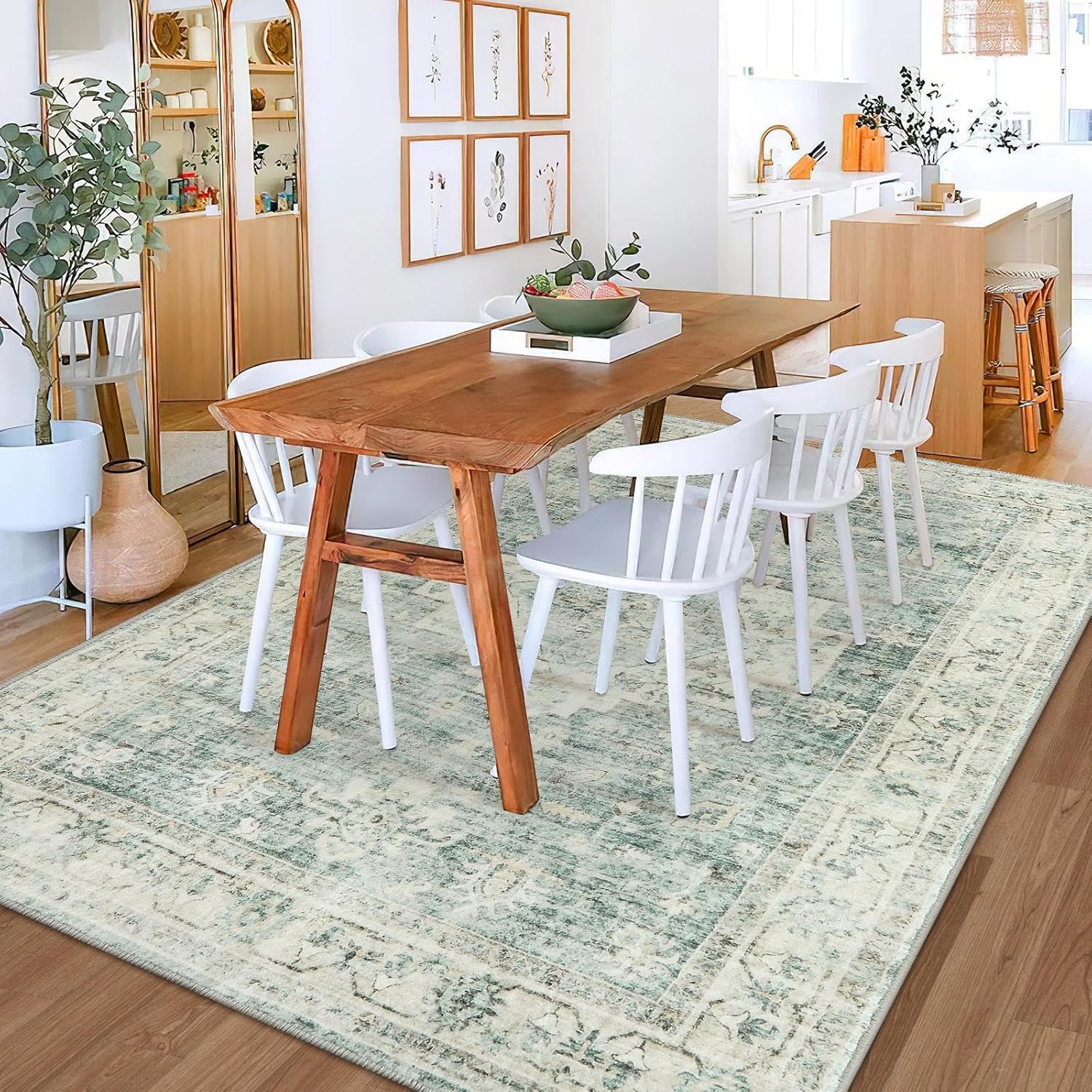 LIVEBOX Washable Area Rug 6x9 Rugs for Living Room Dining Room Under Table, Non-Slip Boho Indoor Carpet for Bedroom, Low-Pile Farmhouse Soft Carpets for Nursery Playroom, Sage Green
