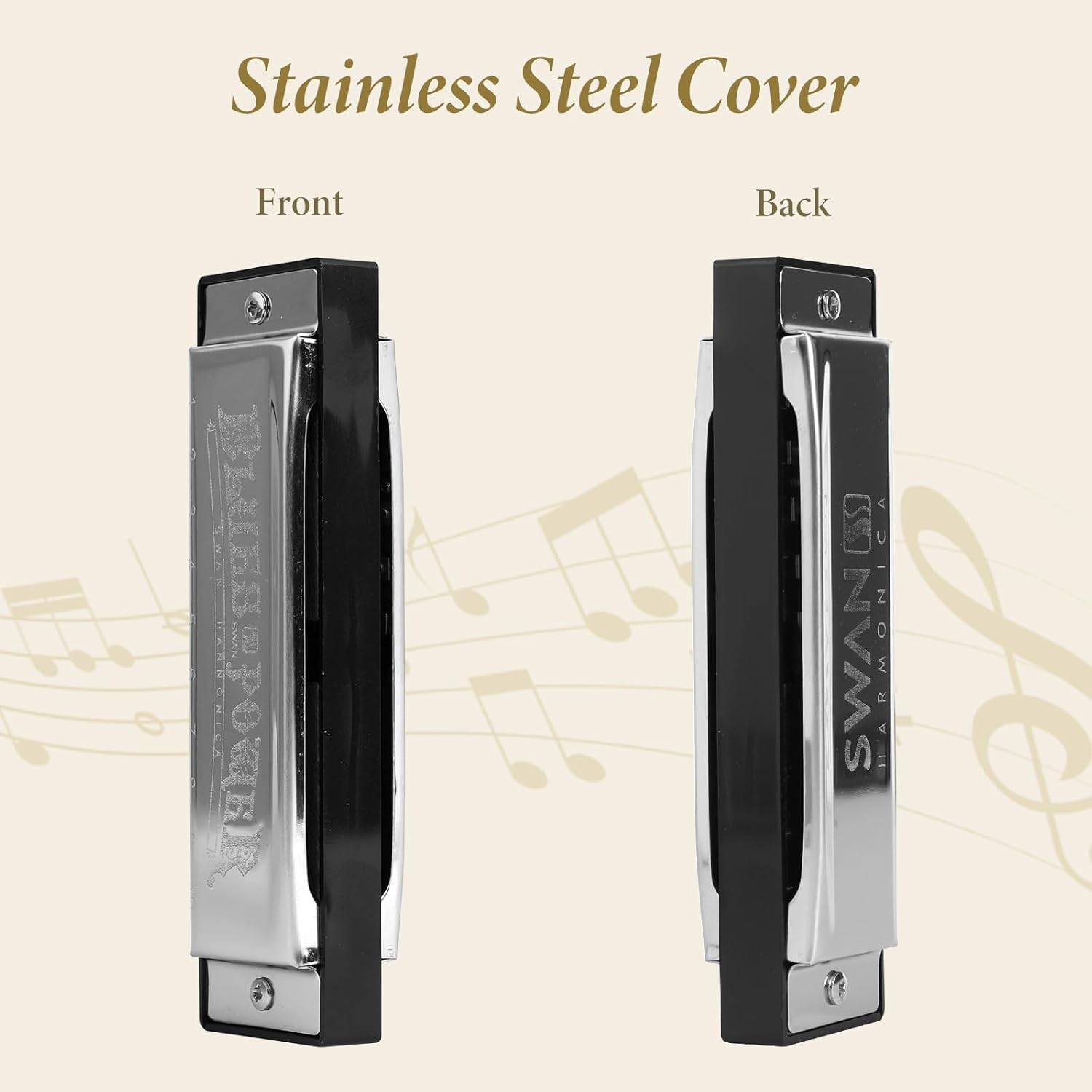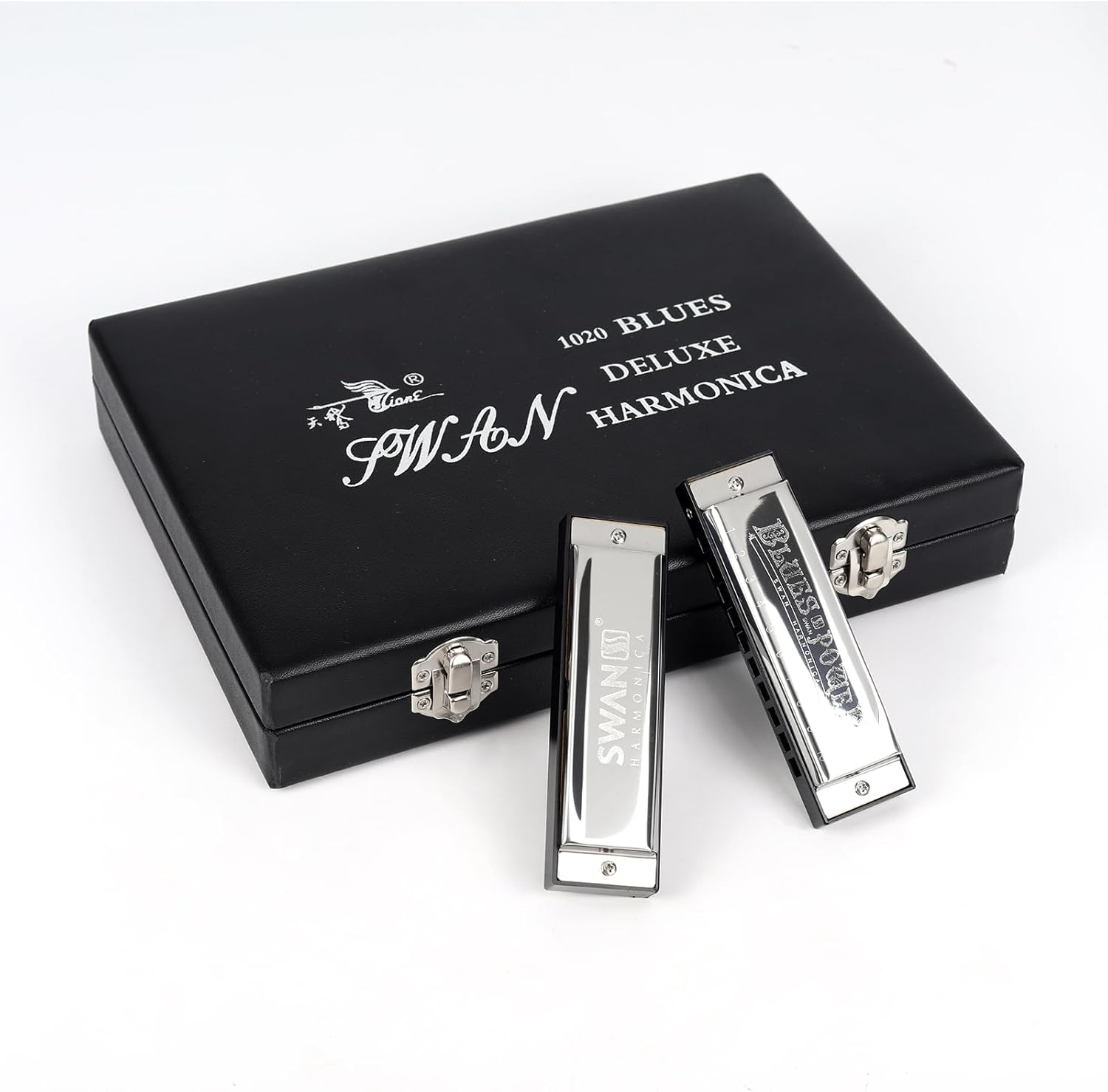 Swan Harmonica 10 Hole Blues Harmonica Set 7/12 Tone Set Suit Gift Box Mouth Organ Harmonica for Beginners Adluts (12 tone set)