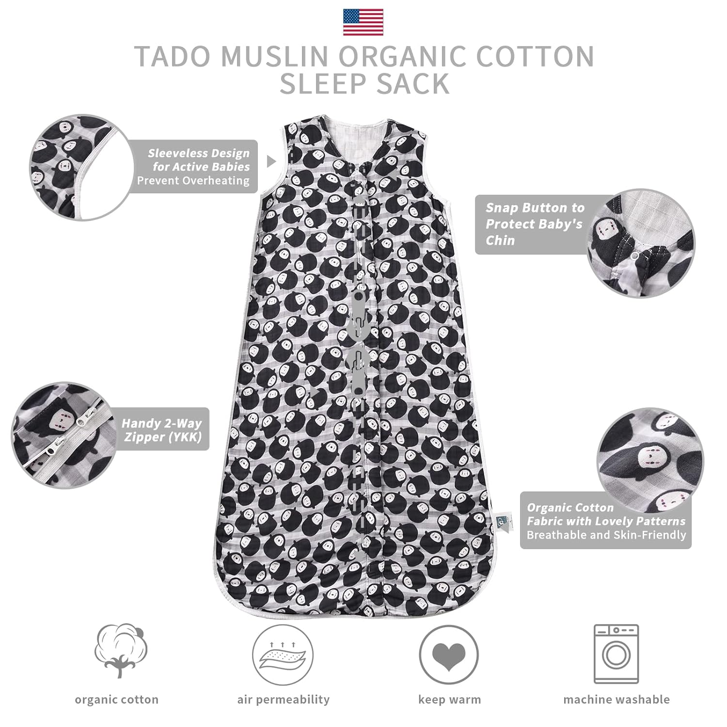- TADO MUSLIN: Your Trusted Sleep Solution: As a leading brand in premium baby products, we prioritize your child's comfort and safety. Our sleep sacks are OEKO-TEX certified. The cute pattern on the sleep sack is colorful, fade-resistant, and durable through many washes. TADO MUSLIN sleep sacks offer the perfect blend of quality, durability, and style. Choose TADO MUSLIN for a sleep environment that nurtures your little one's growth and development