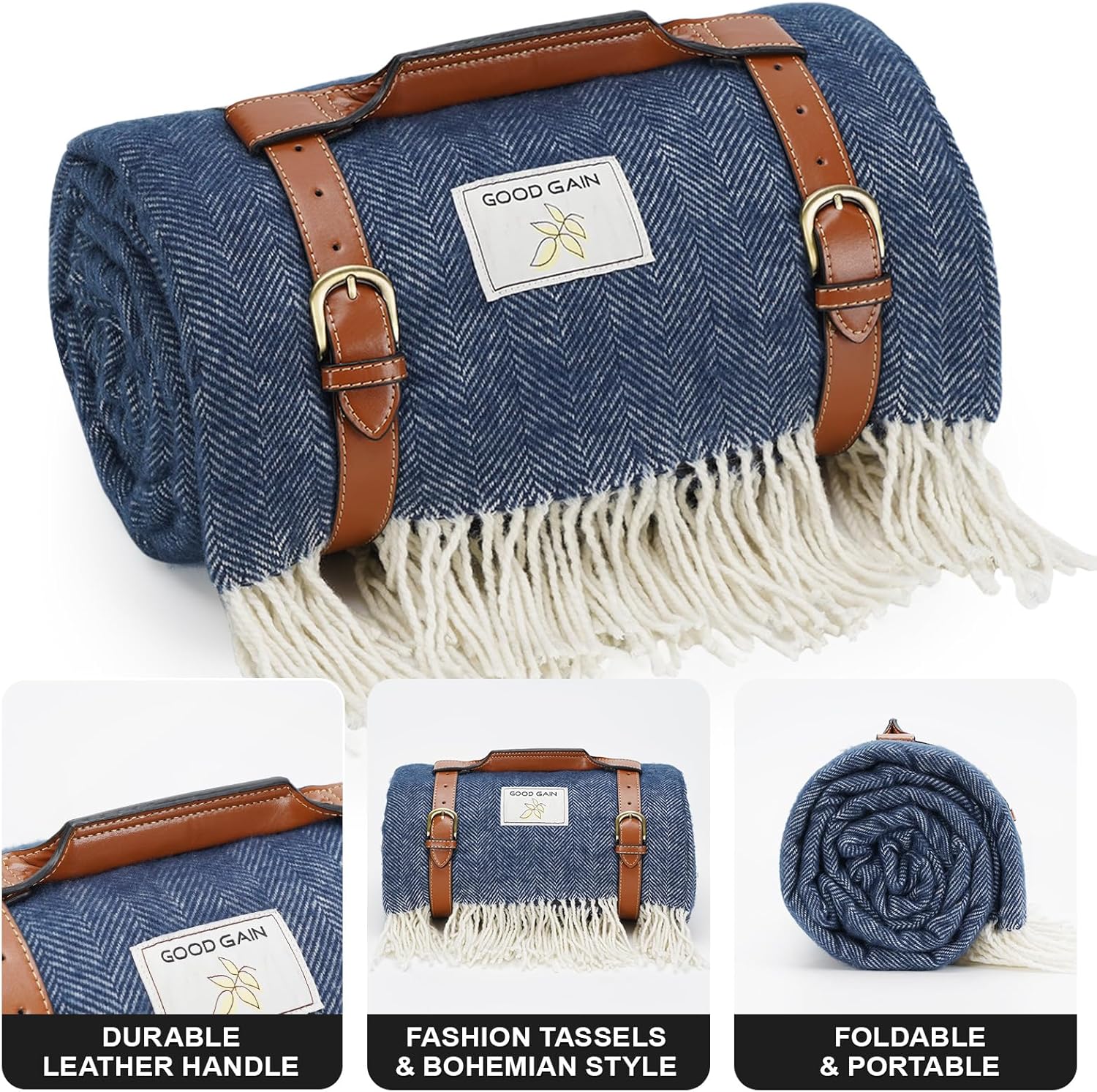 - LARGE SIZE & FOLDABLE-This waterproof blanket outdoor measures 80 * 60 inches, with tassels of 3.9 inches, easily accommodating 4-6 people for an outdoor picnic. It provides a safe and cozy area for your kids and pets to play. When folded, the picnic blankets with PU leather handle is only 15 * 8 inches, making it convenient to carry for traveling and camping.