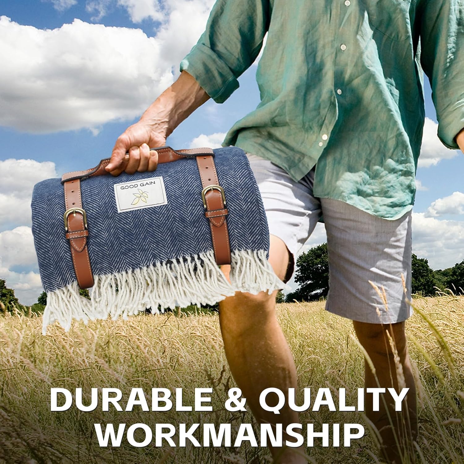 - PRACTICAL 2 in 1 Design- Our picnic mat is the perfect solution for picnics throughout the year. Our unique two-in-one design allows our Boho camping blanket to serve multiple purposes.Complete with a 100% acrylic body and PU leather handle, style, beauty, and practicality are seamlessly combined. We use tassels and unique herringbone lines as decoration to make the large picnic blanket extra special with multiple elements.the black bottom layer serves as a waterproof mat, providing protection against moisture and dirt for a comfortable outdoor experience. Additionally, it serves as a fantastic backdrop for photos.